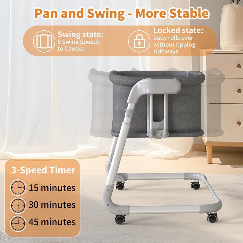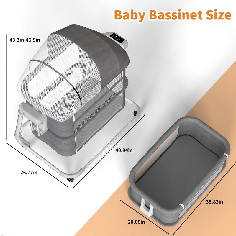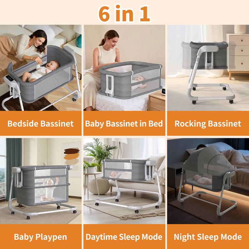 ·6-in-1 Smart Baby Bassinet: Offers multiple modes including crib, bedside sleeper, bed-in-bed, and rocking baby swing.