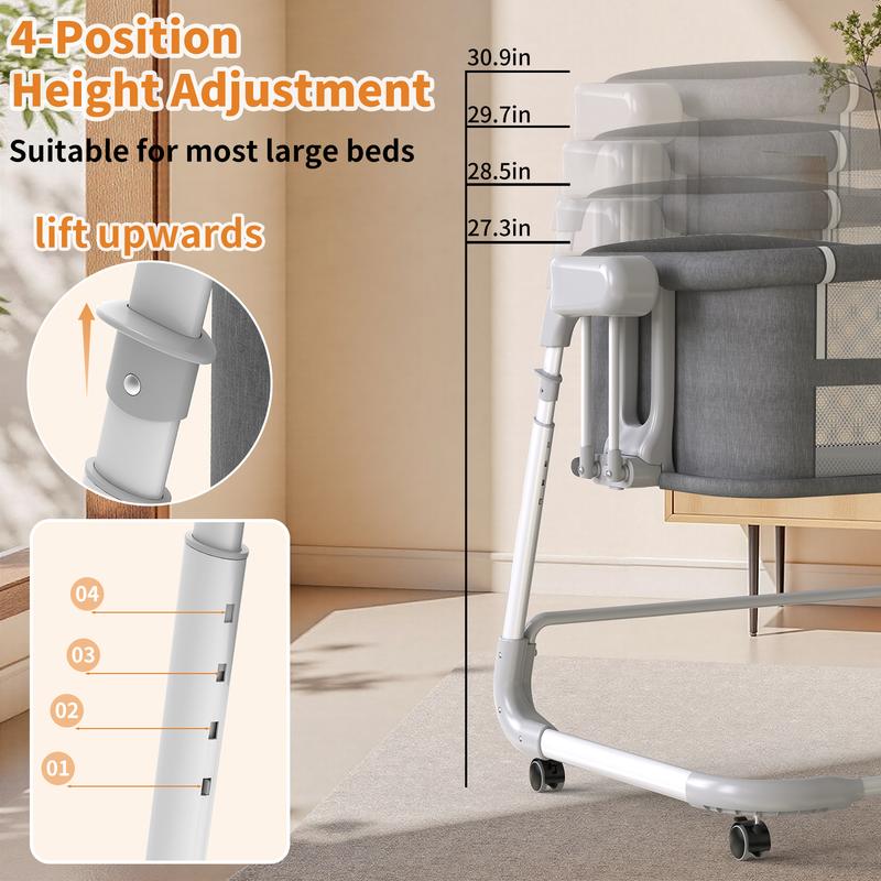 ·Bedside Sleeper: Places the bassinet in the bedroom, adjusts height, and activates bedside sleeper mode for co-sleeping with parents.