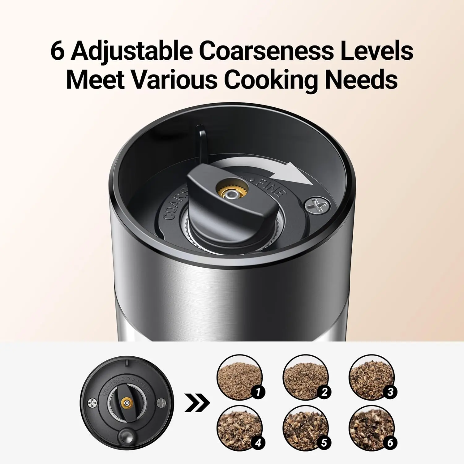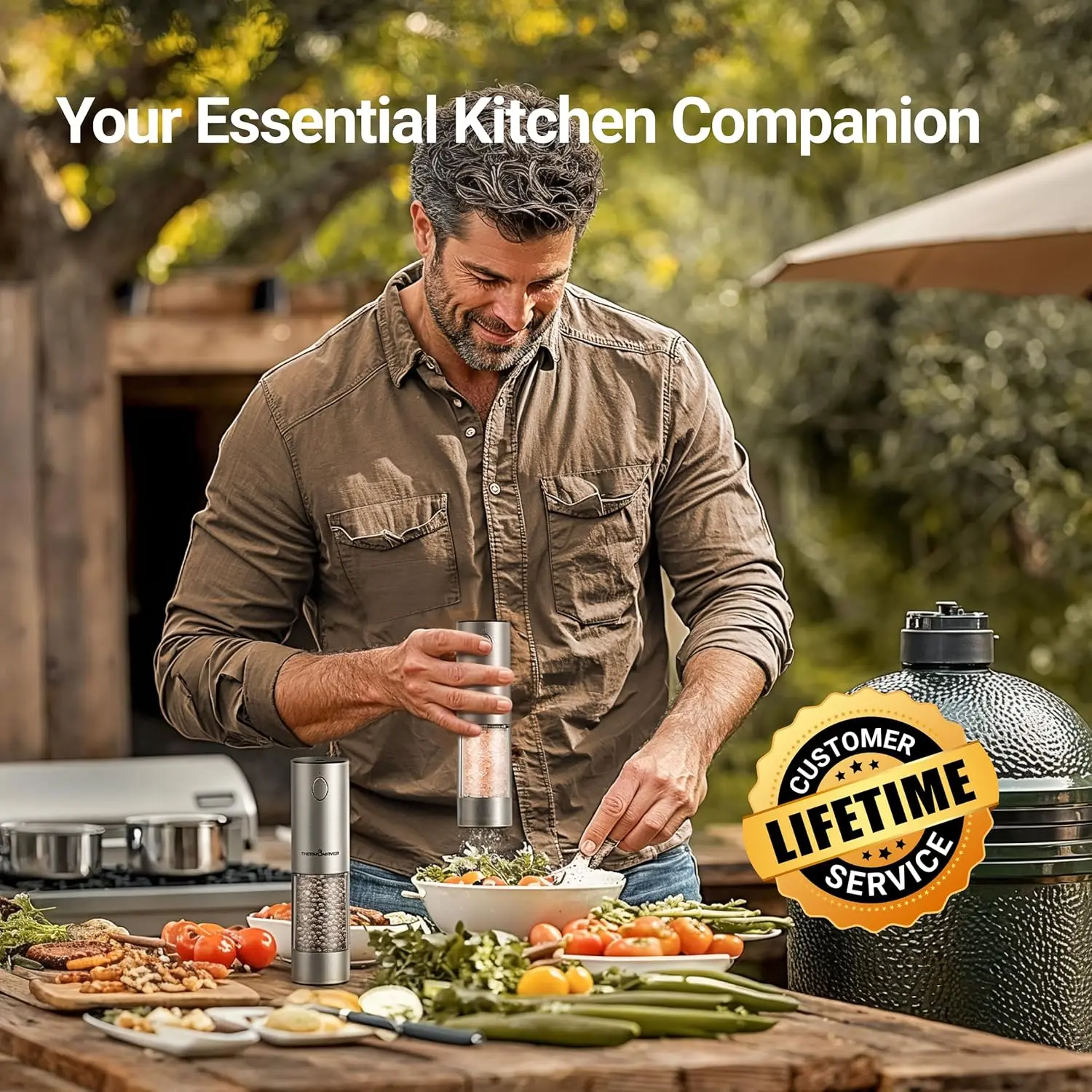 Crafted with premium-grade stainless steel, our electric salt and pepper grinder set not only offers durability but also boasts a sleek and stylish appearance that complements any kitchen or dining table.