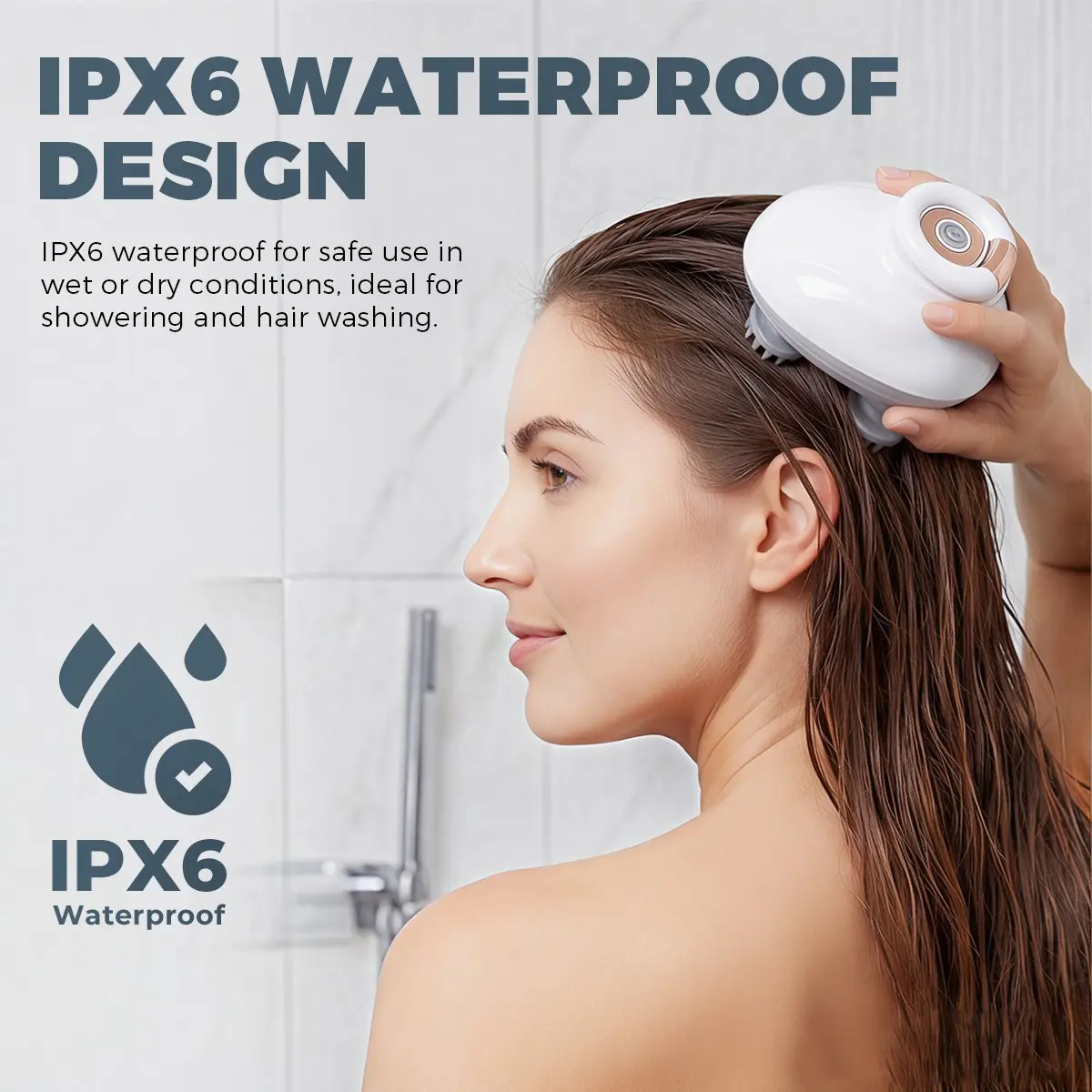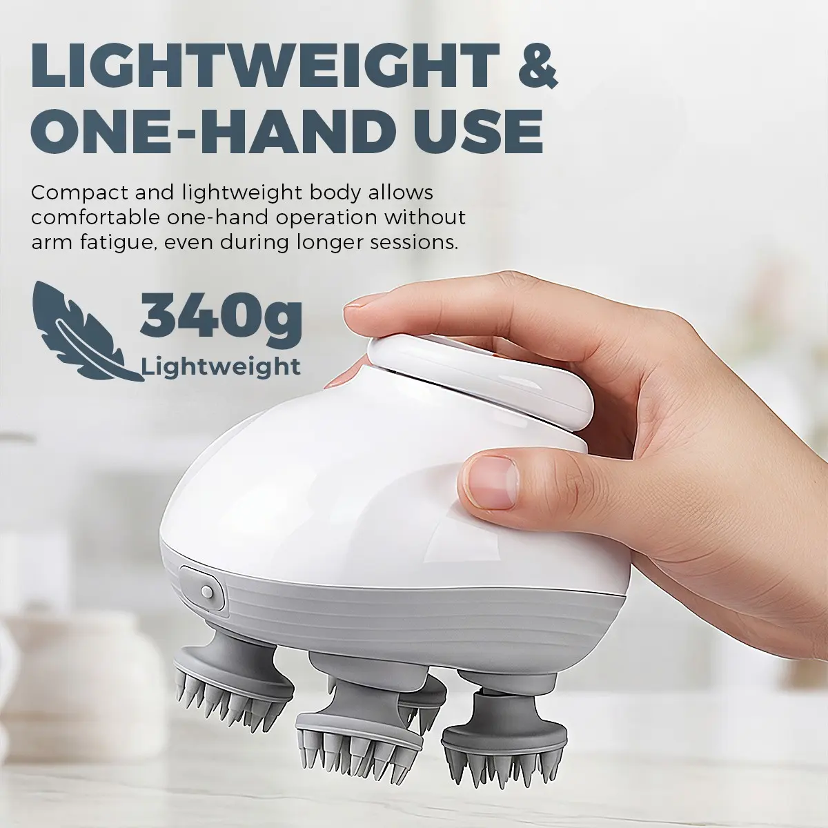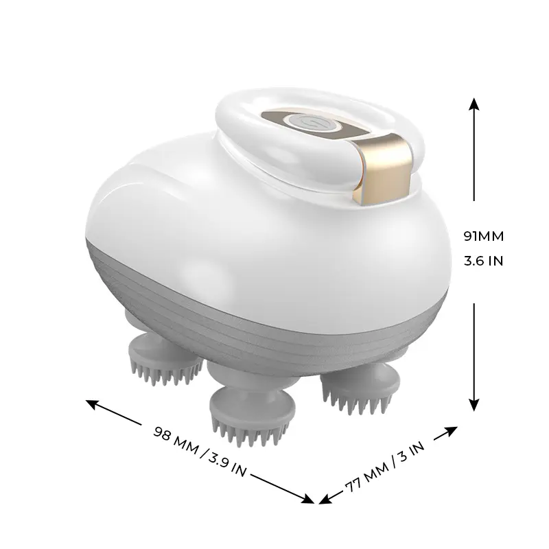 Deep Scalp Massage – 4 silicone heads with 96 nodes for 360° kneading, boosts circulation and relieves soreness.