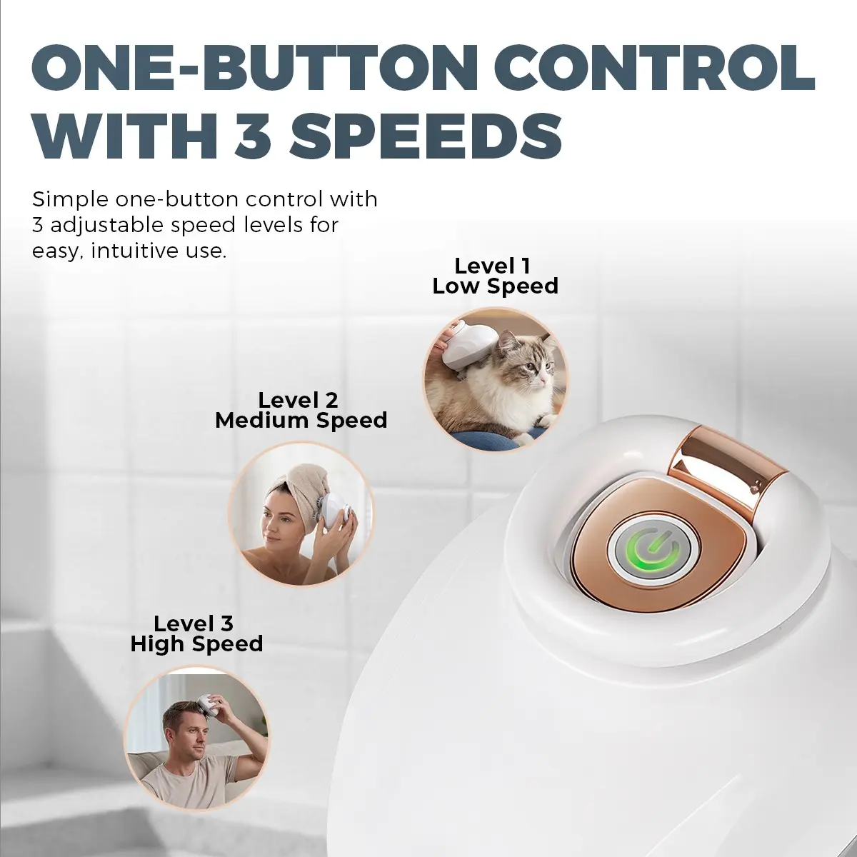 One-Button Control – 3 adjustable speed levels for customized comfort.