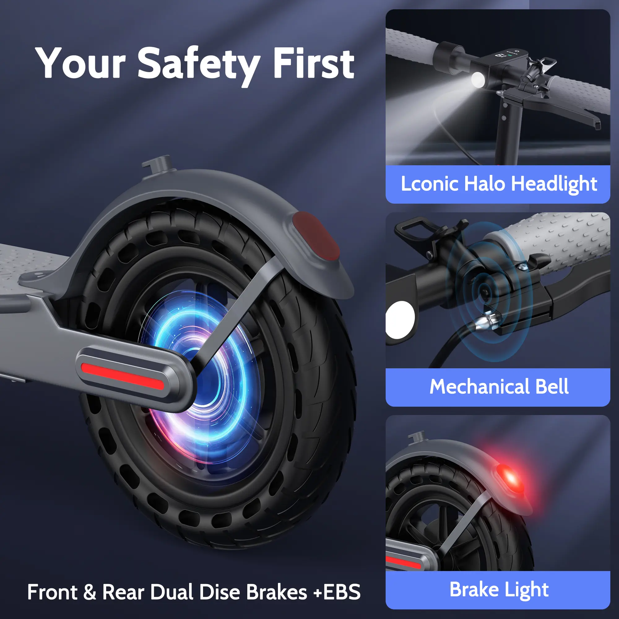 Equipped with solid tires and dual brakes, this scooter ensures safe and fun riding. You can ride with peace of mind. The scooter folds for easy storage and transport, making it convenient for family outings. 📦