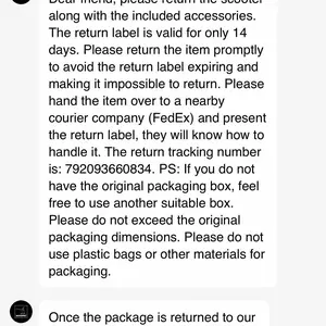 Arrived surprisingly fast. Took a little while to assemble. Light is bright but wish there indicator lights on the front also. I charged the battery and went 1.8 miles going 20 mph. Ride back, the battery was at one bar & wouldn’t go over 16 mph. But I’m satisfied. Comes in handy!