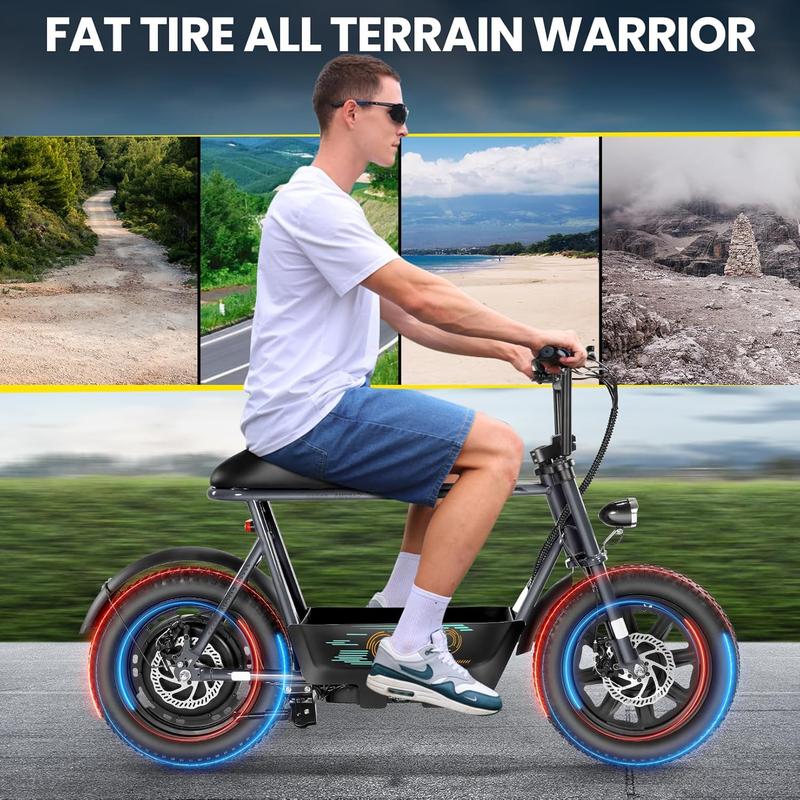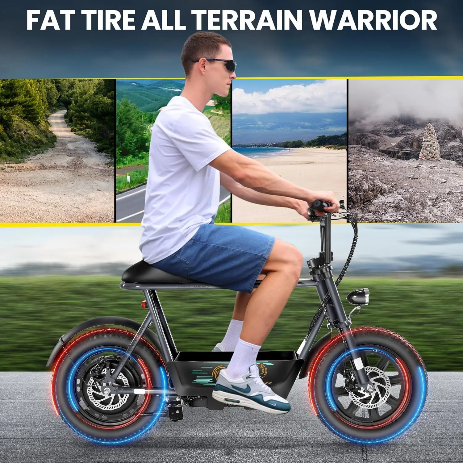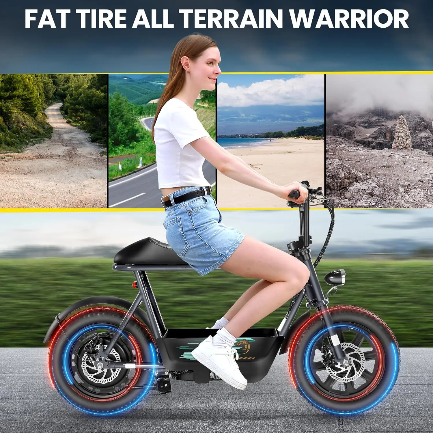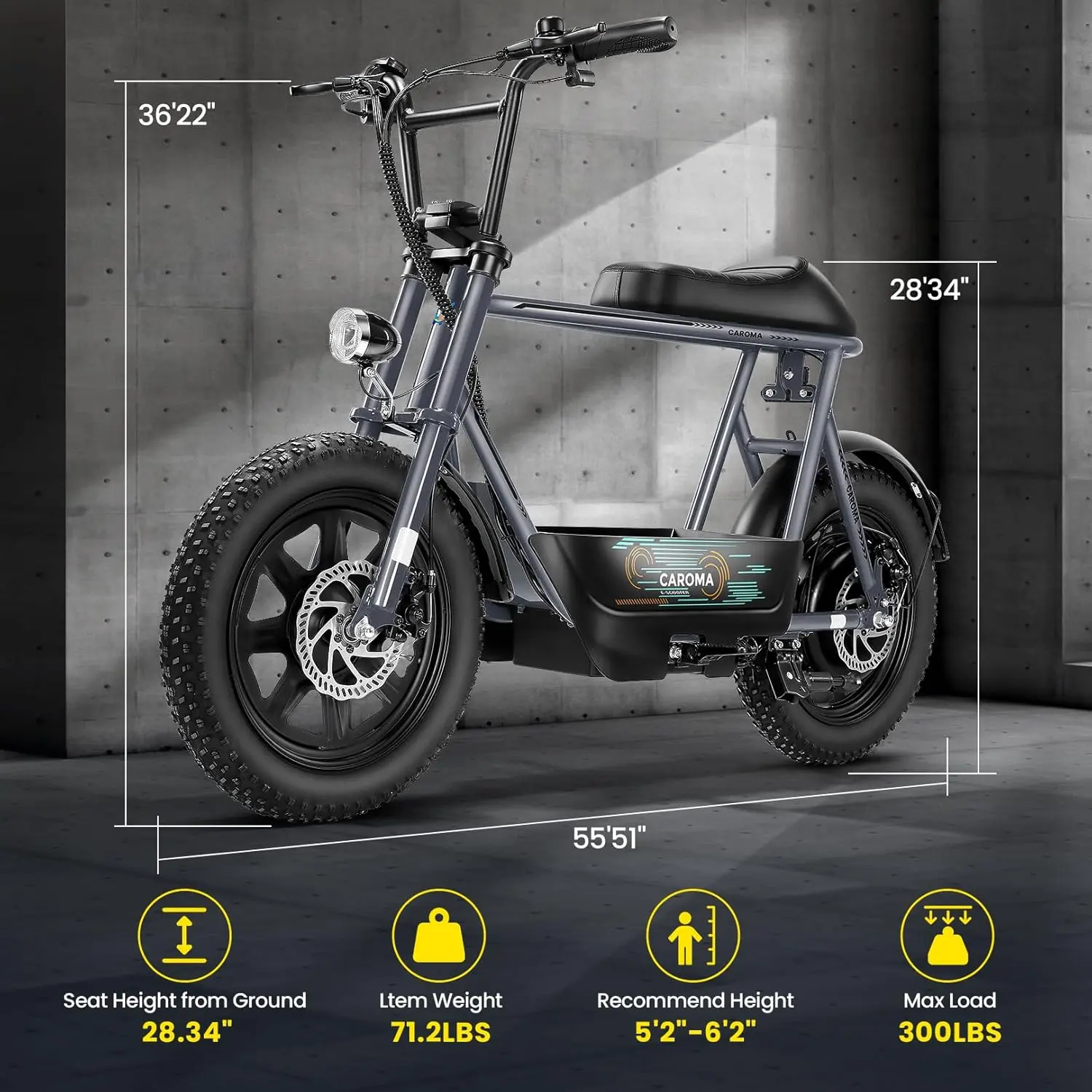 ·【Robust Design】Featuring 16" x 3" off-road tires and a sturdy frame, the Caroma D1 electric scooter minimizes bumps and supports up to 300 lbs, ensuring stability and durability on diverse terrains. Perfect for riders of all sizes.