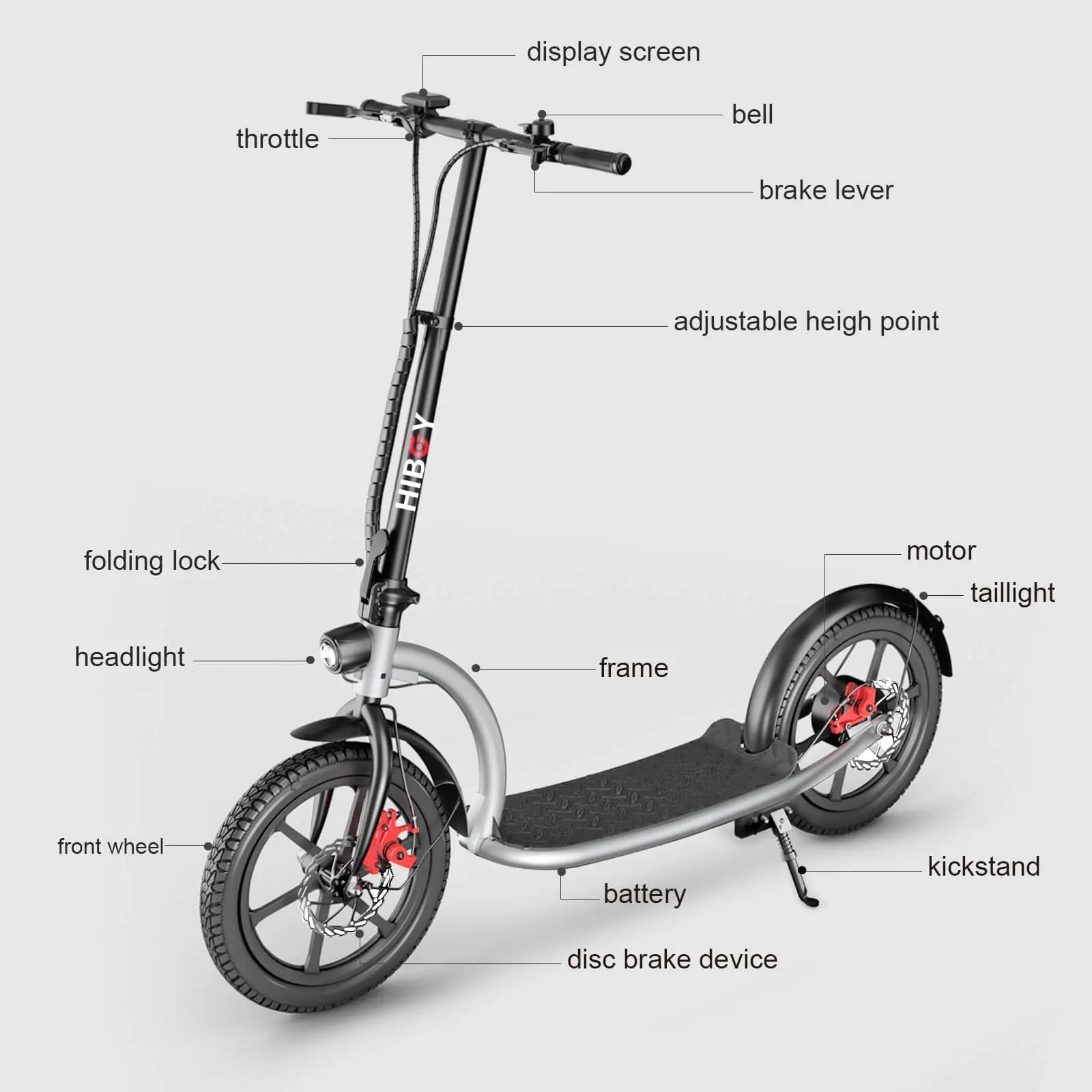 ·Safety with HIBOY Scooter: Dual disc brakes make VE1 Pro more comfortable and safe when riding. Rear-wheel drive shifts weight to the rear, enhancing both drive traction and ease of steering.