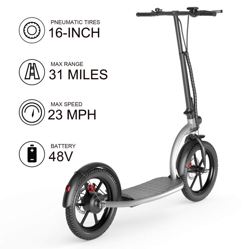 ·Stable & Comfortable: The first hiboy 16" tires electric scooter provides a smoother, safer ride on uneven terrain. Wider foot deck offer you plenty of foot room and a cosy, stylish ride.