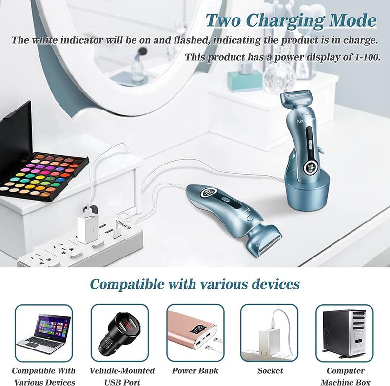 IPX7 Waterproof: Electric razor for women with IPX7 100% waterproof,you can use it even in shower, and it can be cleaned under running water.