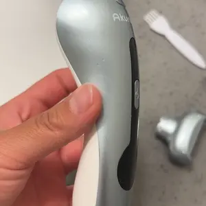 ·Cleaning the Shaver Head: When hair accumulates, use the small brush to clean it. Press the middle button to remove the head, and rinse the blades with water or clean with the brush.