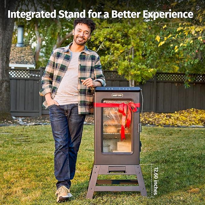 The included sturdy stand raises smoking height for a more comfortable, stable cooking setup, enhancing overall user experience