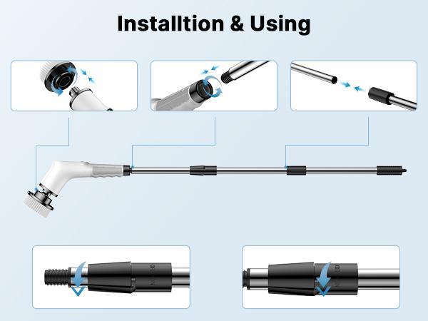 [Retractable Handle] Say goodbye to dragging power cords! The cordless power scrubber comes with a hand-held and extendable handle, adjustable from 30-53 inches. Clean hard-to-reach places and corners without bending over or kneeling. Lightweight and comfortable to hold, making long sweeps a breeze.