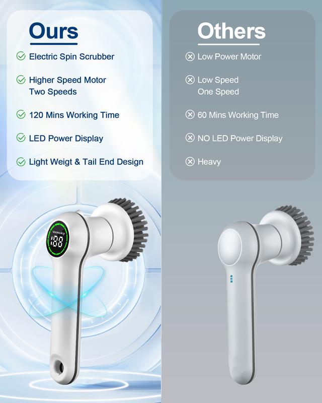 γUSB-C Fast Charging & Power DisplayγEquipped with a USB-C charging port, it charges twice as fast as traditional scrubbers, reaching full capacity in under 2 hours. The digital power display lets you monitor battery levels with ease, ensuring a hassle-free cleaning experience.