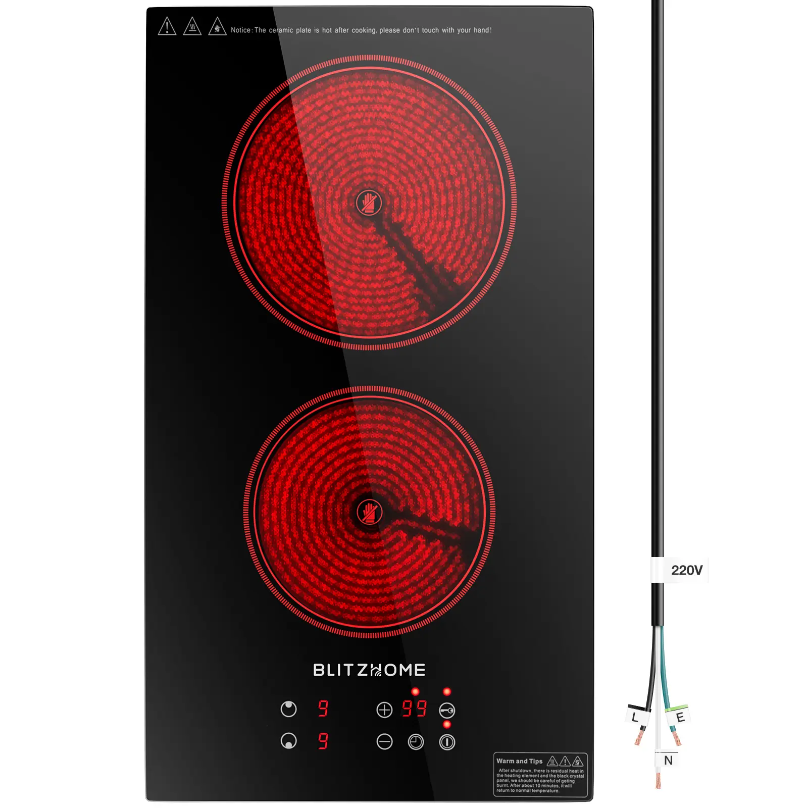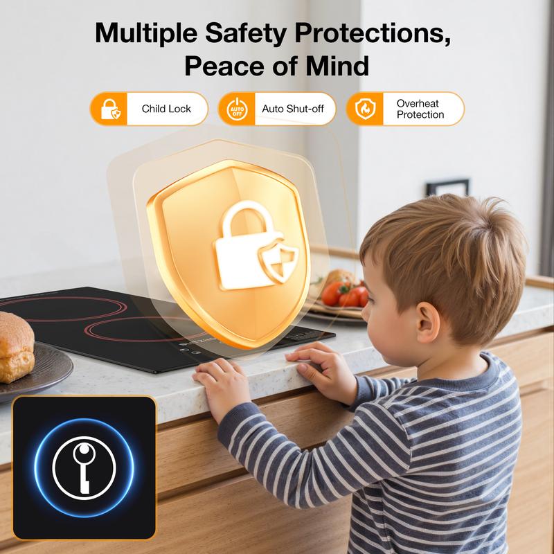 ·9 Precision Heating Levels: Master your recipes with 9 adjustable heating levels. Easily control each electric stove top burner to suit light and slow stewing or high-heat searing, offering great flexibility and convenience for various cooking styles and ingredients