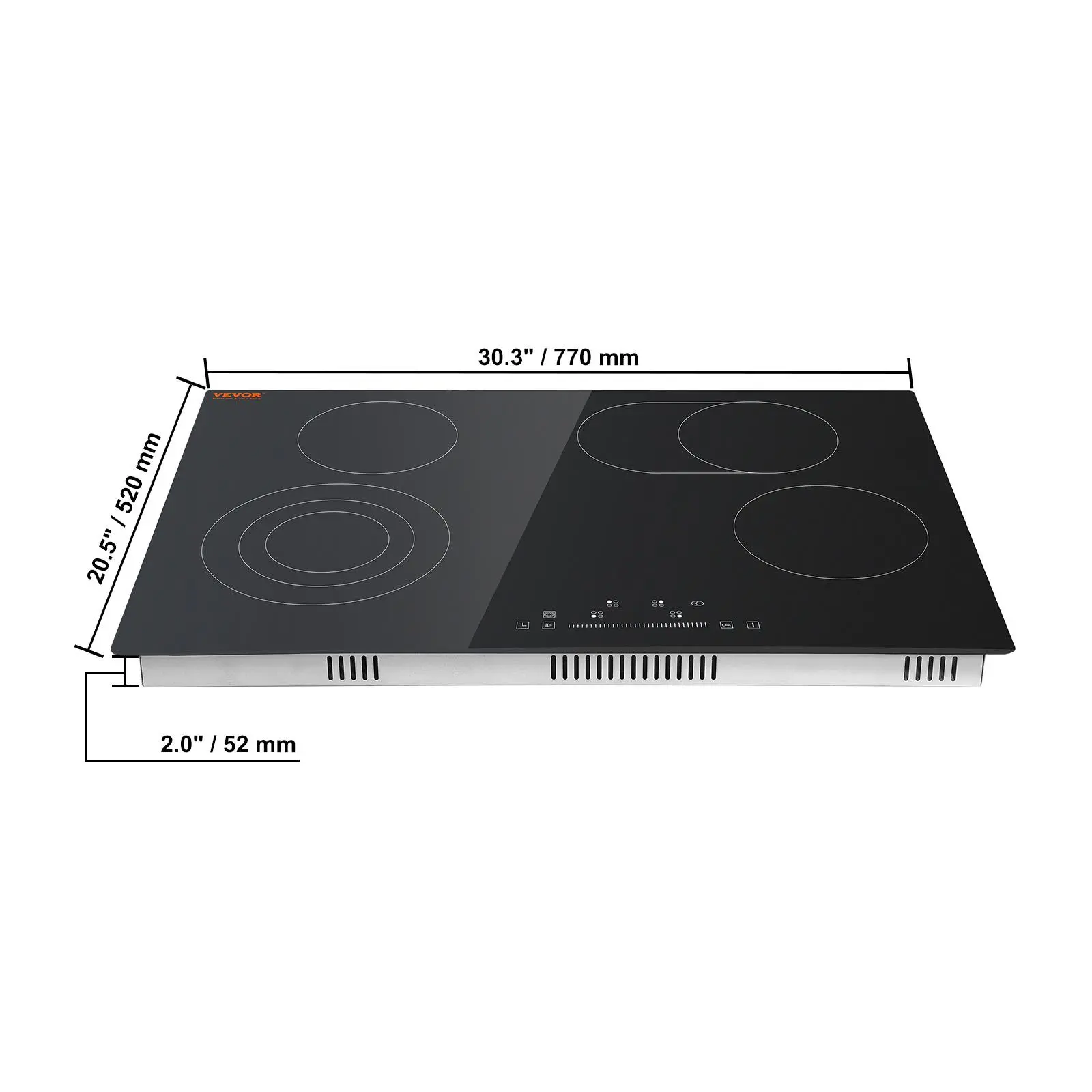 • Built-in Design: With the 29.1x19.2-inch cutout size, this 30.3x20.5 inch cooktop adopts a built-in design, convenient for you to install and saves your kitchen space. Suitable for voltages of 220-240V, 60Hz.
