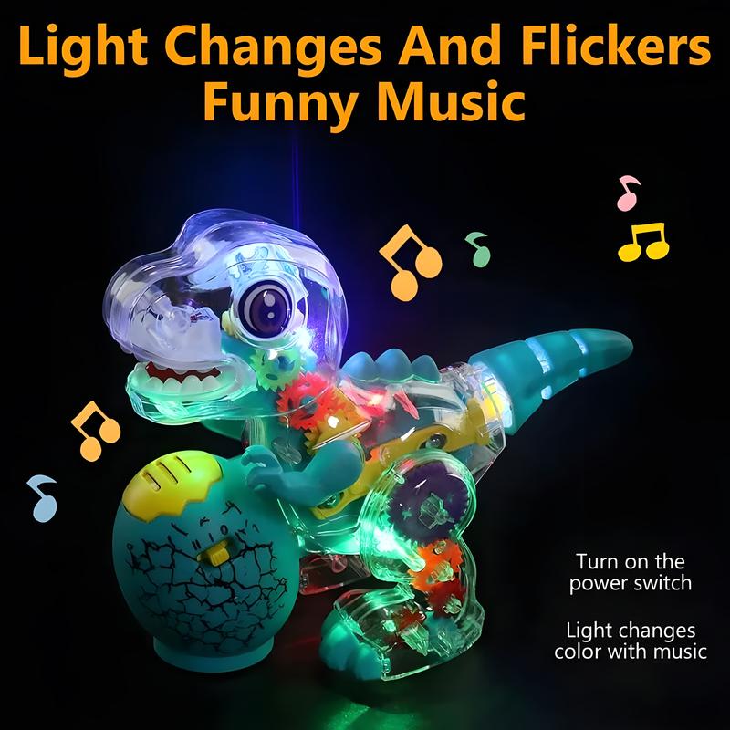 Β·γIgnite Passion and CuriosityγThis dinosaur toy can ignite kids' passion and arouse their curiosity, taking fun to the extreme, thus creating unique and everlasting memories for kids. Not only does this transparent dinosaur car play music, light up, and move on its own, but it also has colorful gears that spin in a dazzling way that captures your child's attention for hours of fun.
