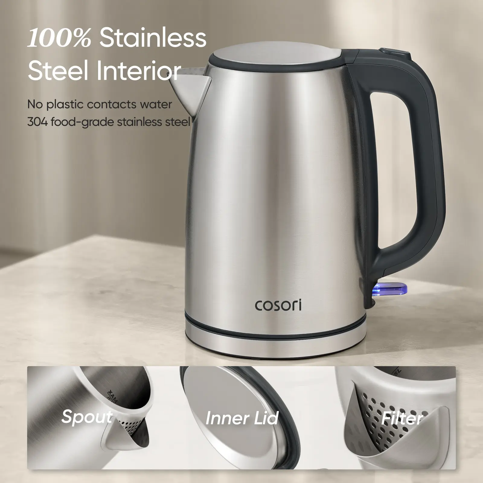 ·Built to Last: Durable stainless steel construction with superior heat retention (compared to Cosori 171 Glass Kettle) and Strix auto shut-off for long-term reliability.