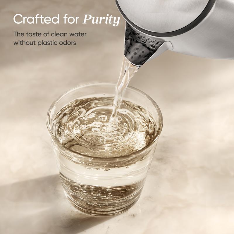 304 Food-Grade Stainless Steel: 100% stainless steel interior. Plastic-free—spout, inner lid, and filter all made of 304 stainless steel.