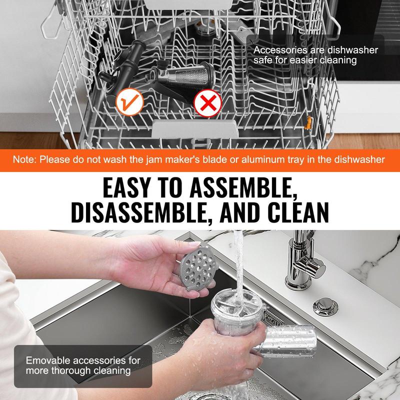 ·Easy to Use and Clean: Our electric tomato strainer uses a knob operation mode, just turn it to turn on/off; when you encounter interference during the grinding process, you can turn the "reverse" knob, and the auger will rotate in the opposite direction, quickly solving the blockage problem. When you are done, you can directly disassemble the various accessories for washing. If you have a dishwasher at home, it is more convenient to put it directly into the dishwasher for cleaning.