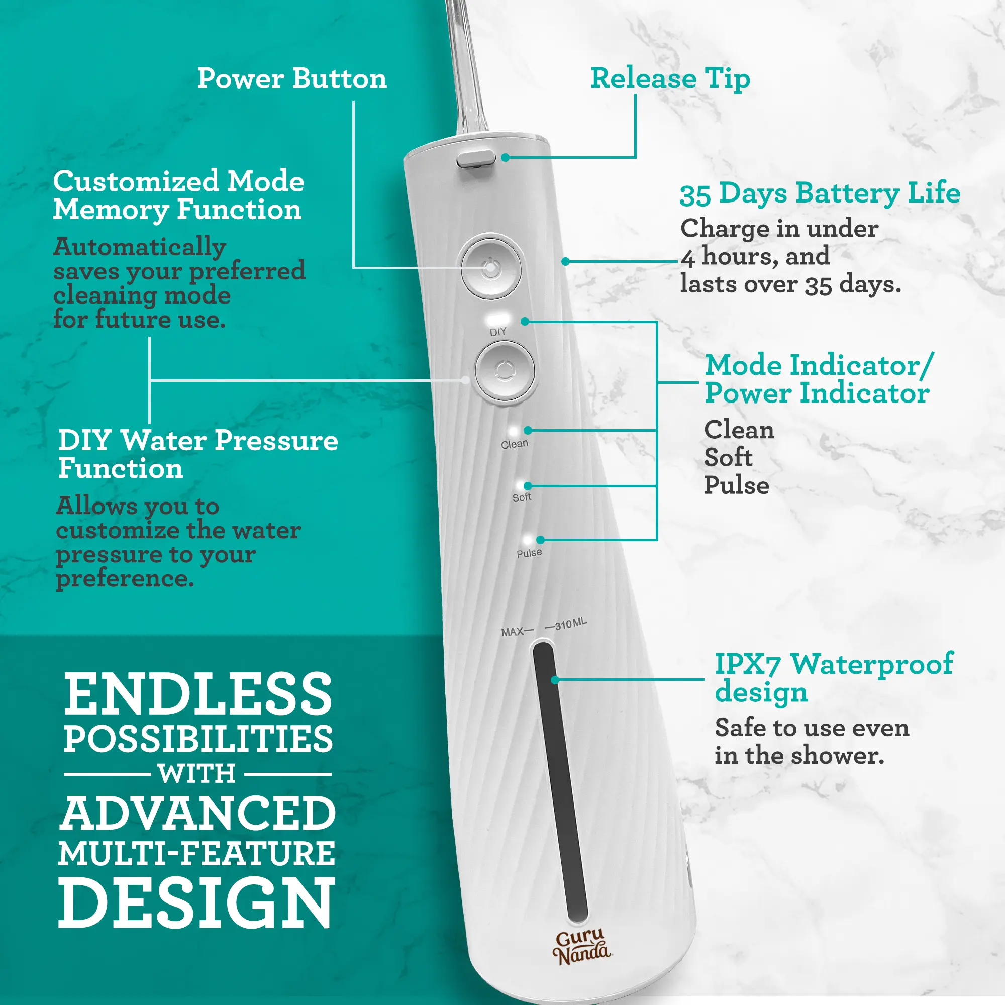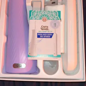 I can’t express how much I love Guru Nanda! But this one right here is the best product. Shopping was excellent as always but the product its self is chef’s kiss. The battery life amazing charge one day will last up to 1 and half . Different speeds depending on your own personal preference it came with a traveling kit 😍😍 which includes space for the brush and pick !! Not only is it gorgeous but it actually does what it claims which is to improve oral care help u have an even better smile and healthy gums 100/100 recommend. Don’t walk Run !