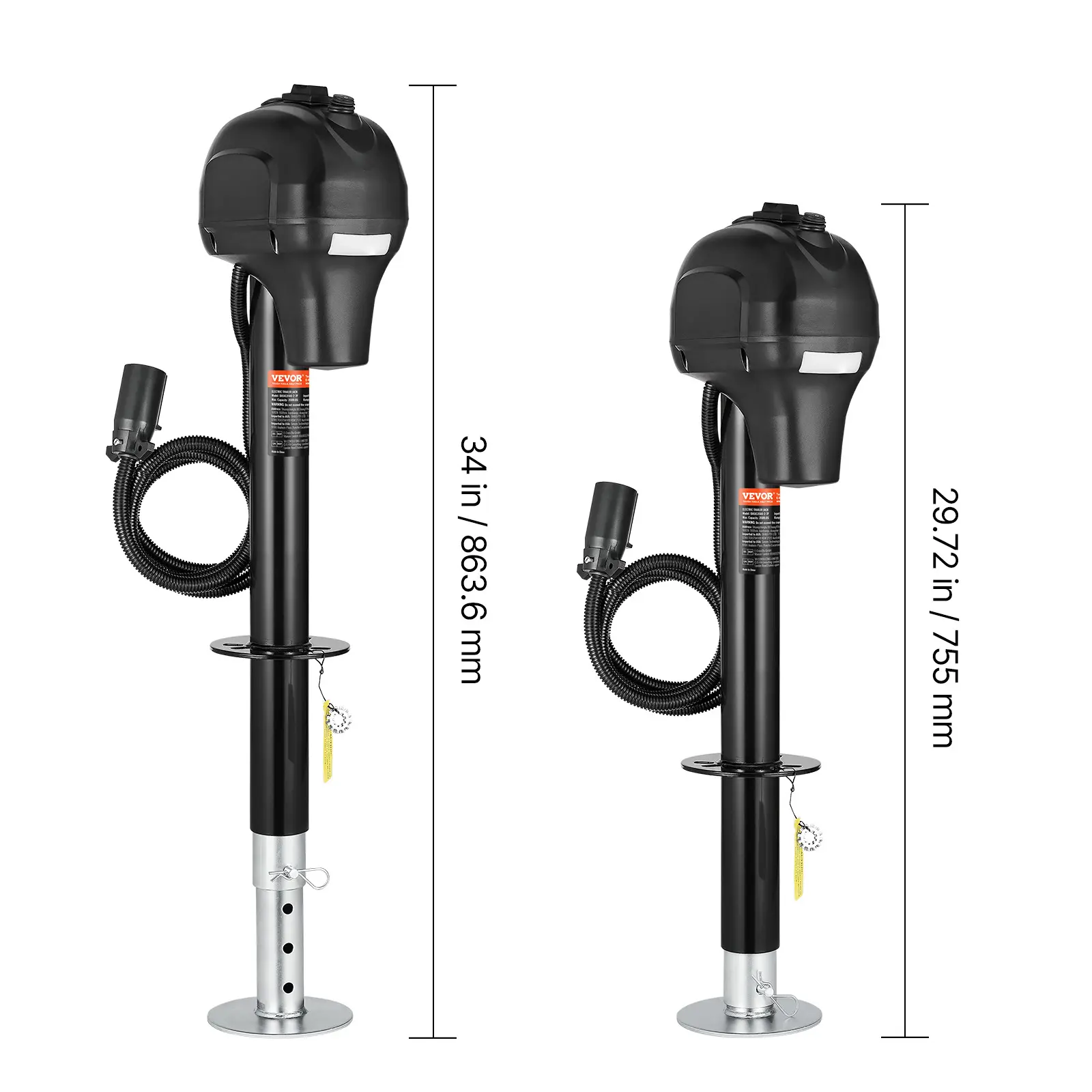 • Heavy-Duty Load Capacity: The VEVOR electric trailer jack boasts an impressive lifting capacity of 3500 lbs and a lifting range of 9.5 to 32 inches.