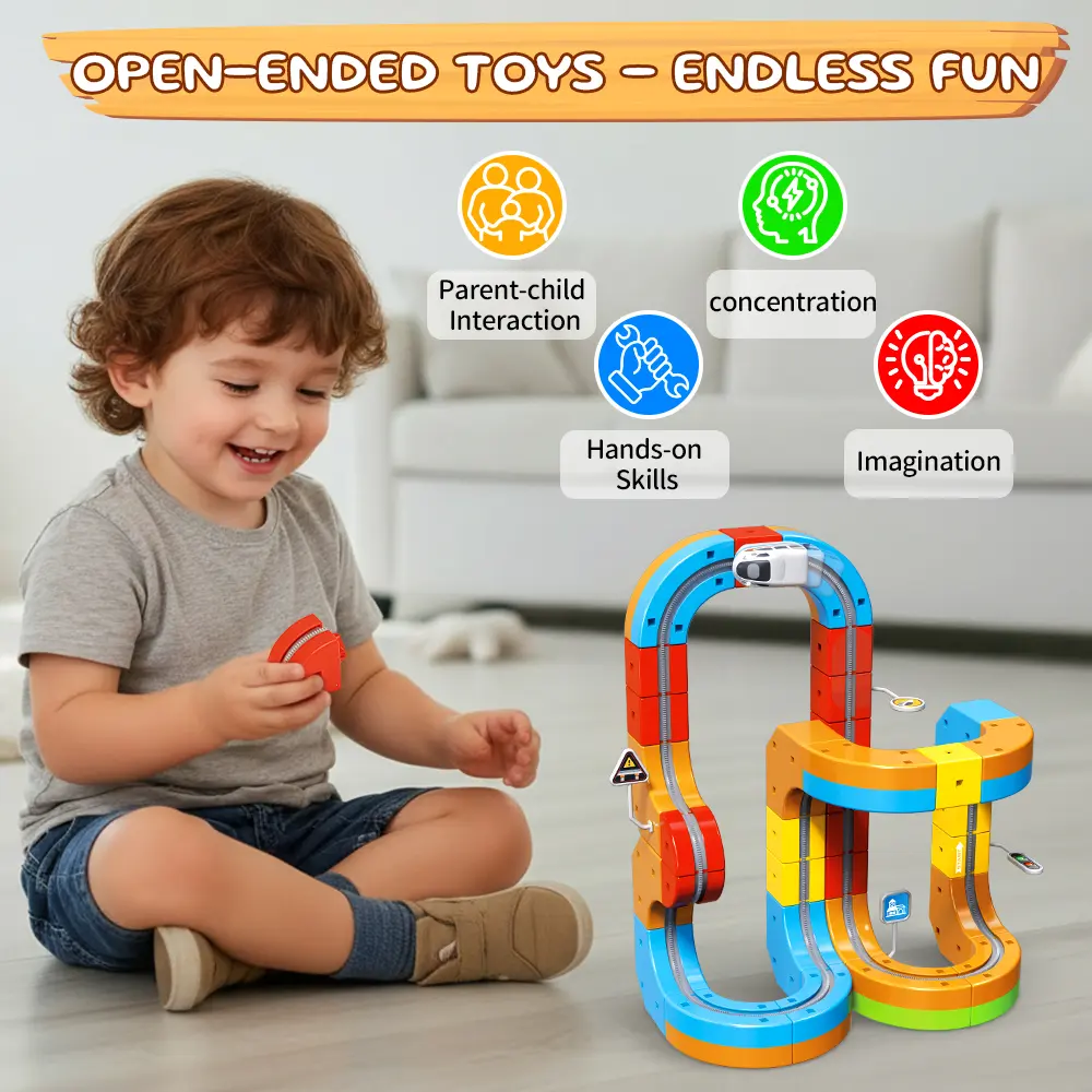 ·Flexible Race Track: This toy set features a flexible race track, perfect for endless fun and creativity. 🌟