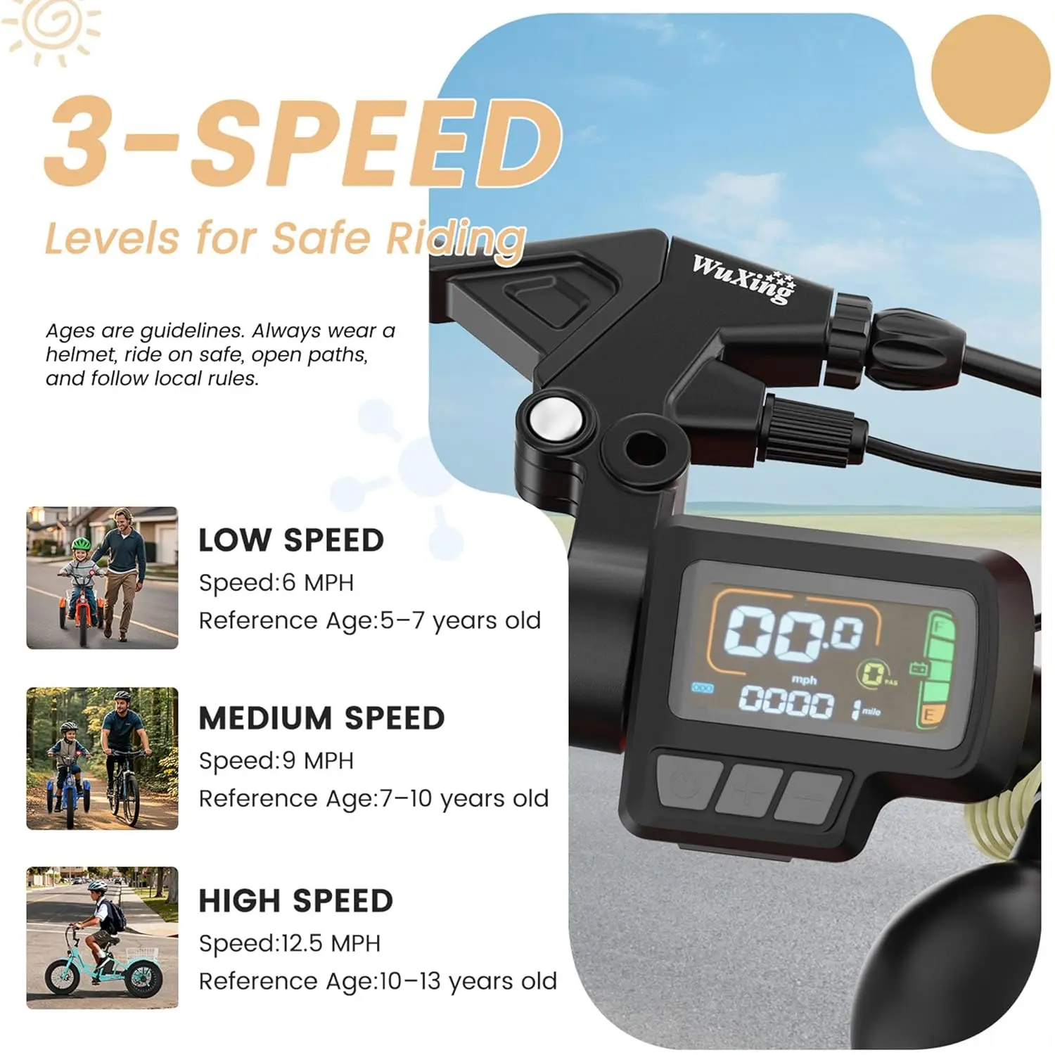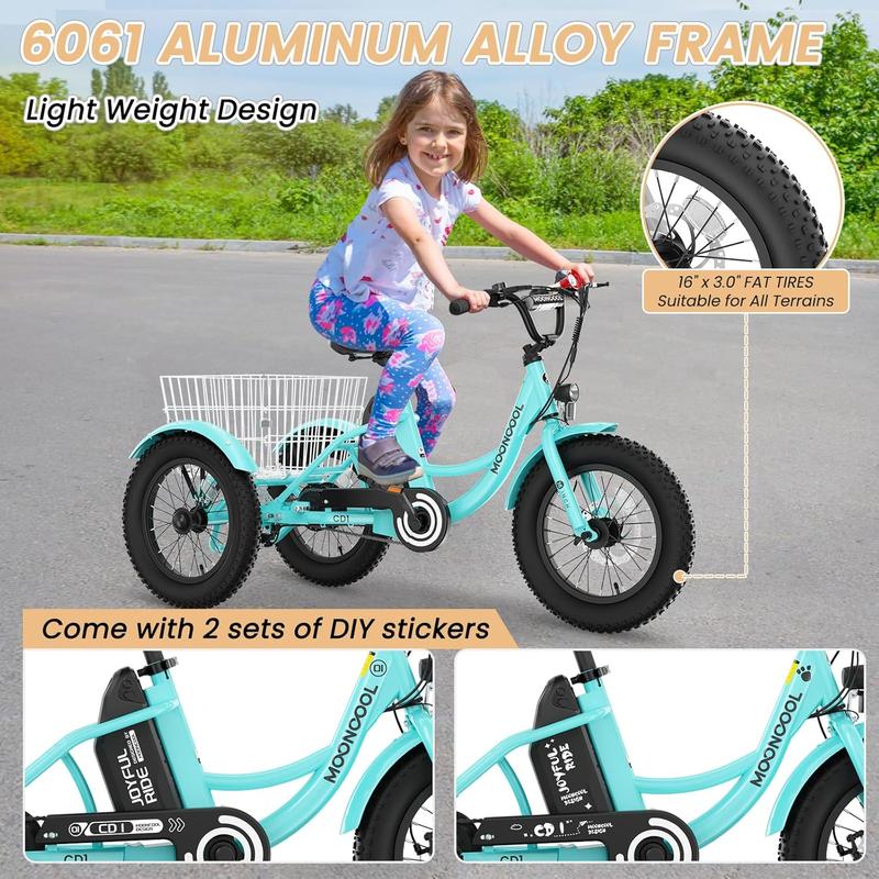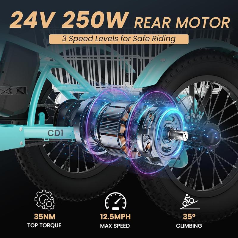 ·【3 Riding Modes】: Discover three distinct riding experiences with our electric tricycle. Whether you prefer the convenience of a throttle-powered etrike, the support of a power-assisting tricycle, or the traditional feel of a normal tricycle, our product adapts to your needs.Our three wheel e-bike features 16 inch wheels with 3 inch tires which provide excellent roll and a cushioned, stable ride.