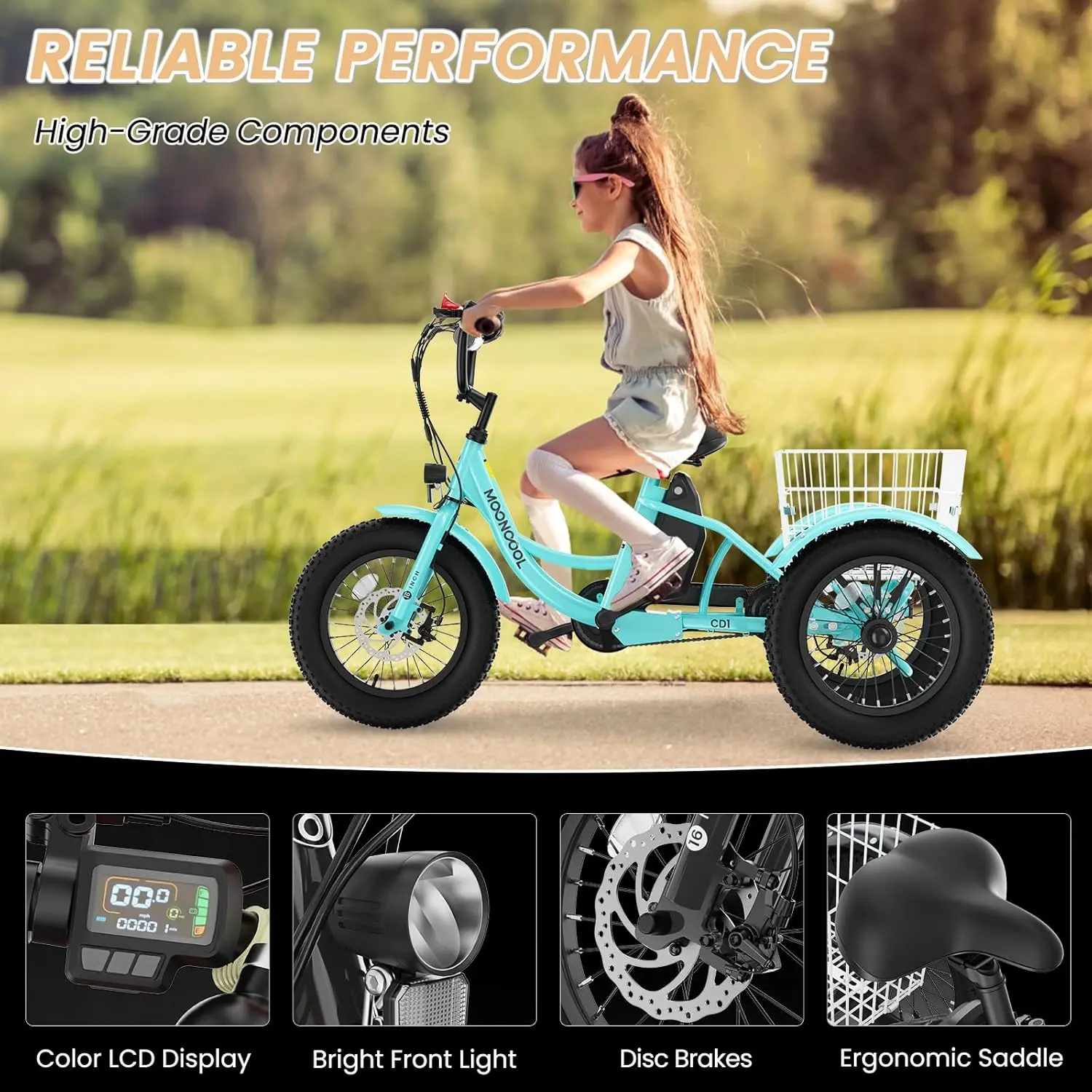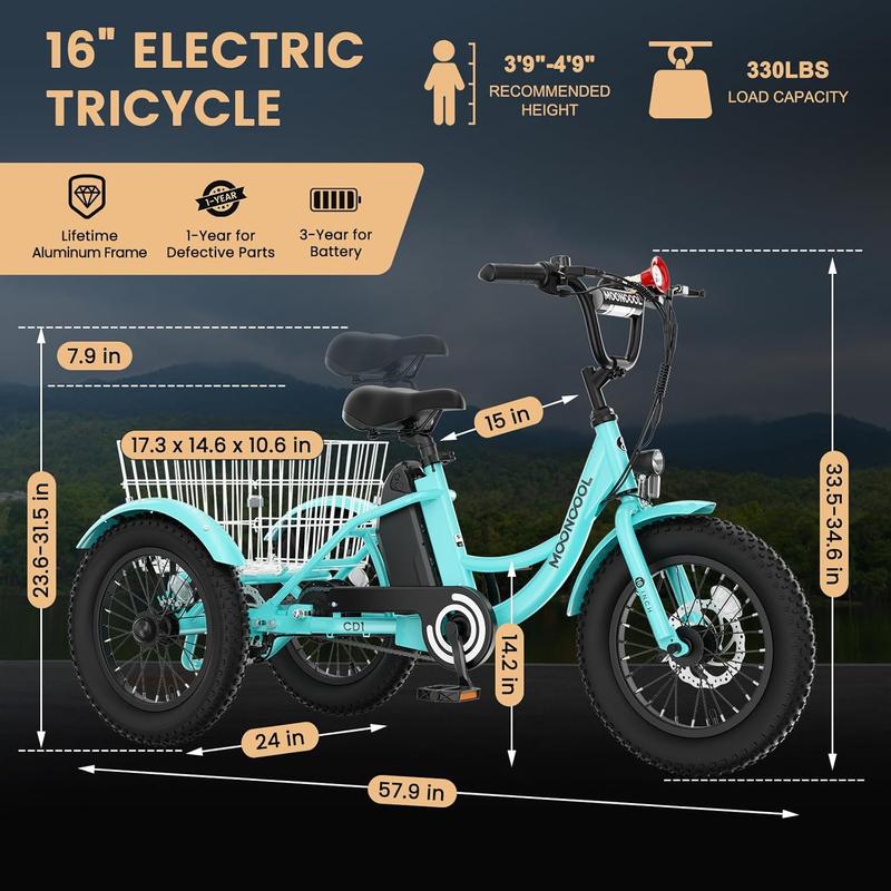 ·【Easy To Assemble】: With our customers in mind, MOONCOOL electric trike arrives 75% pre-assembled for ultimate convenience, making setup easier than any competing products. Complete the assembly effortlessly with our detailed user manual or video guide. All necessary tools are included, ensuring a smooth and easy assembly process.