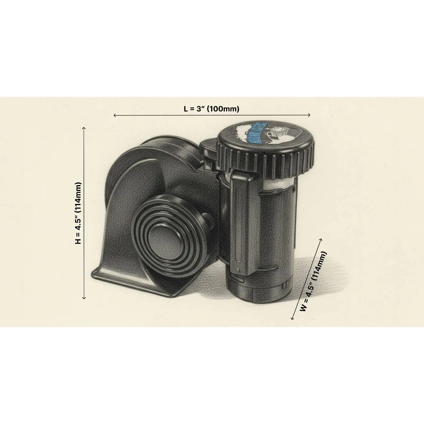 Introducing the HornBlasters Compact Truck Horn – where compact design meets an unparalleled sound. Tailored for vehicles limited by space, this horn guarantees that size doesn't compromise strength.