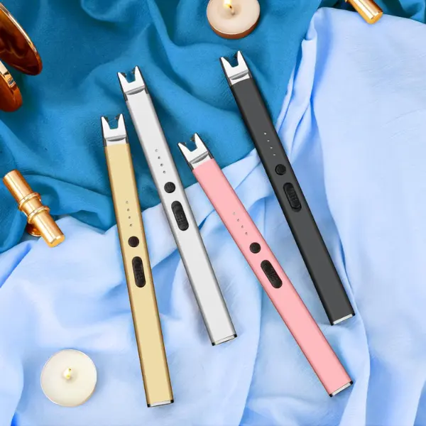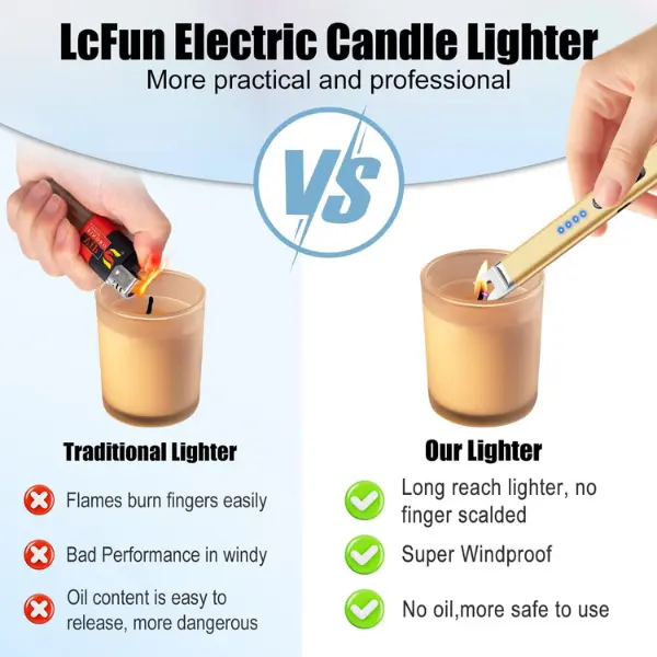 ✨ 2 Pack Candle Lighter - This electric USB rechargeable plasma arc lighter comes in black and champagne gold. It features a safety lock and is windproof, ensuring a flameless long light. Perfect for candle, grill, BBQ, camping, and gas stoves.