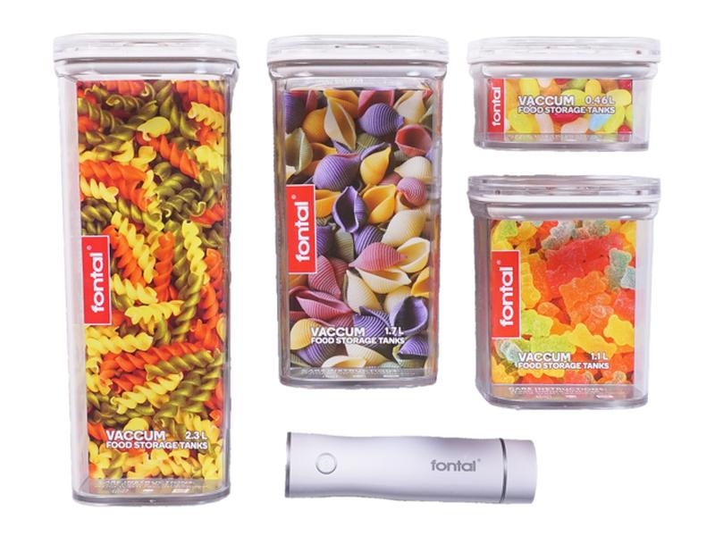 This vacuum sealer features 4 airtight food storage containers in sizes 0.5Qt, 1.2Qt, 1.8Qt, and 2.4Qt. It stops when the optimal vacuum pressure is achieved, isolating air and delaying oxidation. Made from BPA-free, food-safe materials, it's suitable for temperatures between -0.4~176F. Keep your dry foods fresh longer with ease.