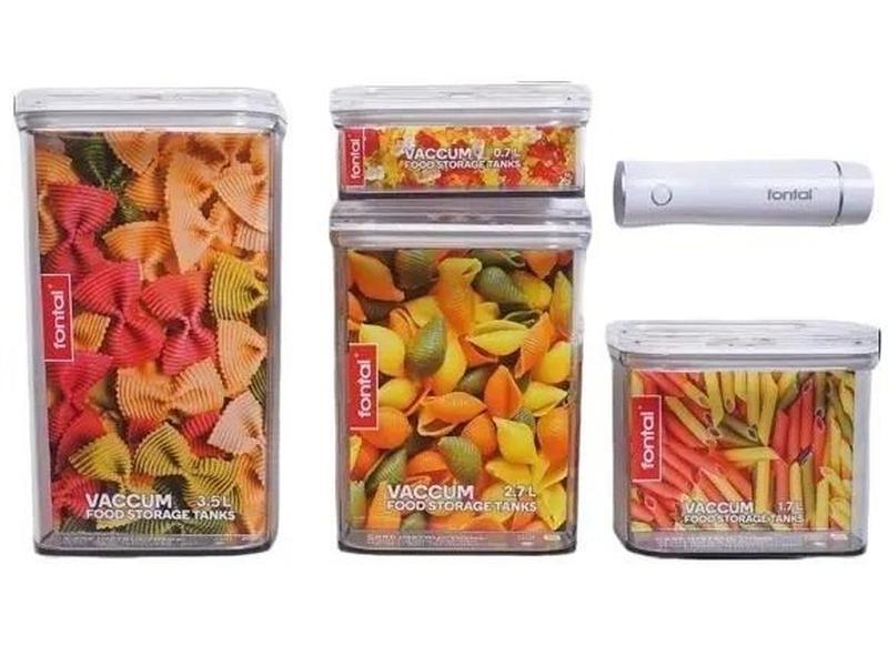 The four multi-use containers can store coffee beans, pasta, and dry goods. They are stackable, allowing you to fit perfectly into any kitchen space. The material safety ensures your health and safety. This compact, lightweight sealer operates quietly, enhancing your cooking experience without noise.