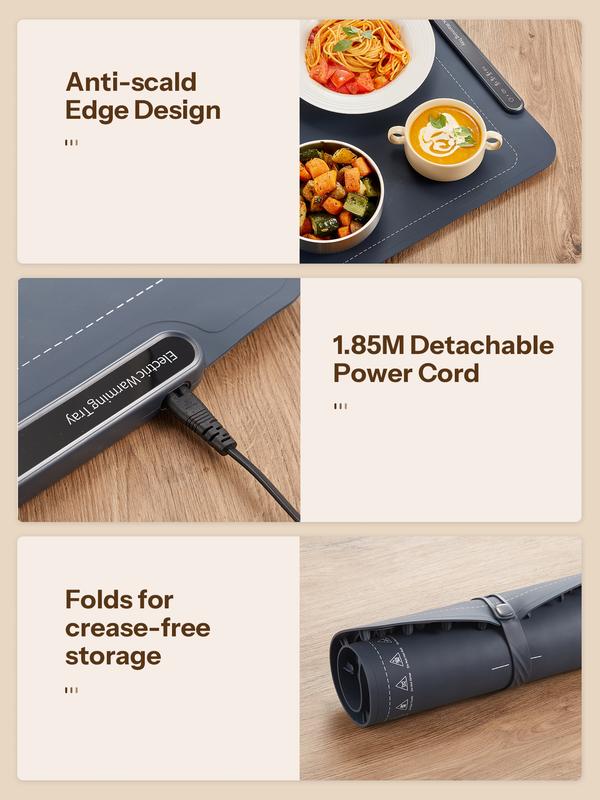 This foldable heating mat is a kitchen essential. It keeps dishes warm for daily meals, ferments dough, thaws frozen foods, and maintains temperatures for family dinners, gatherings, events, and religious celebrations. Elevate your cooking experience with ease!