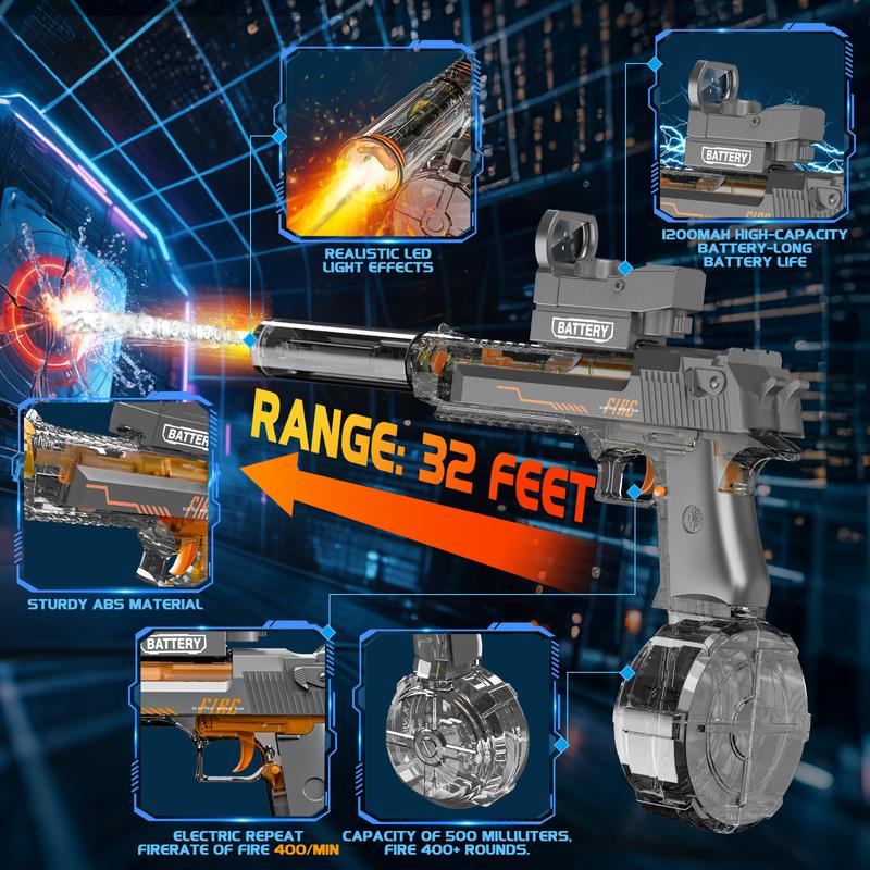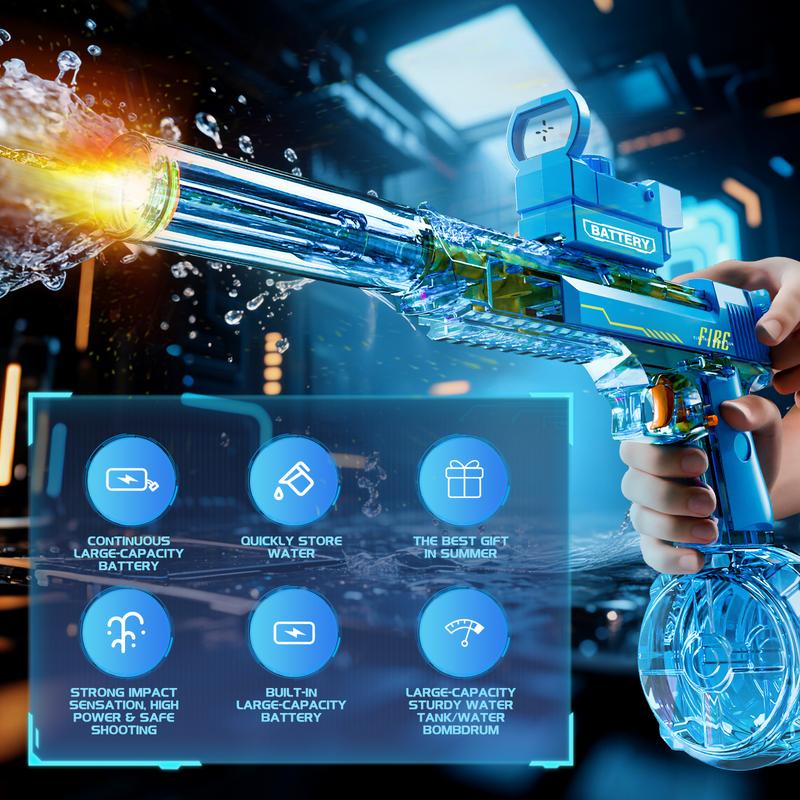 We've crafted our water gun using high-quality materials to ensure durability and long-lasting performance. Plus, we've taken extra measures to protect the battery. Equipped with a sturdy battery protection cover, you can engage in water battles with confidence, knowing that your water gun is safe from any water-related mishaps