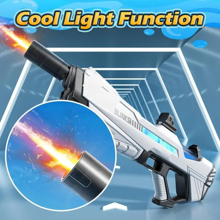 Experience the thrill of battle with stunning LED light effects! The integrated LED lights synchronize with every water shot, creating a visually exciting and immersive play experience—perfect for day or night use.