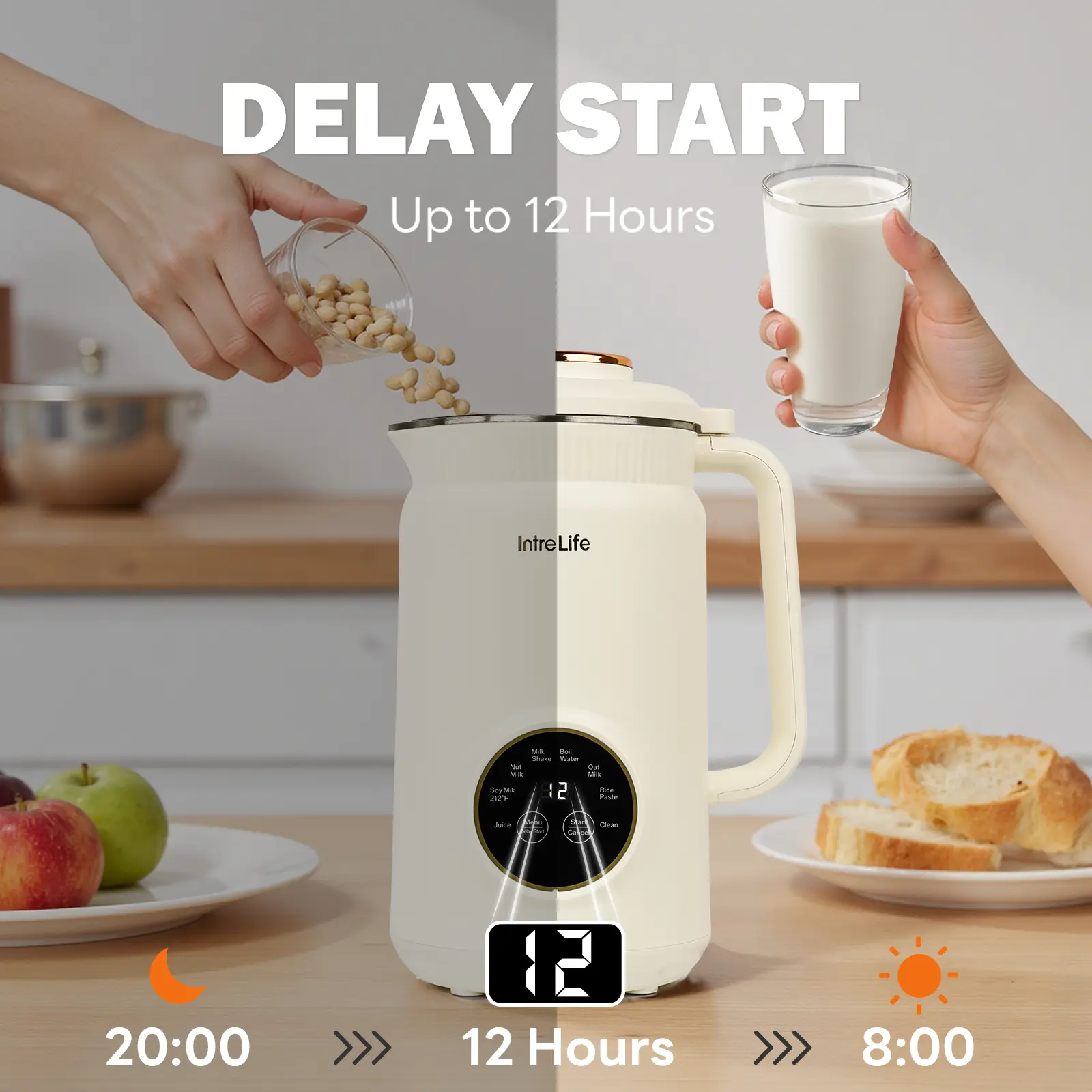Plan with the 12-hour delay timer, allowing you to prepare ingredients in advance and wake up or come home to freshly made, warm nut milk right when you want it. Automatically keeps warm for up to 2 hours after blending.