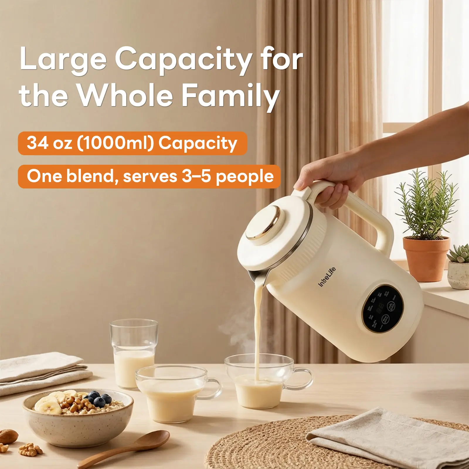 Upgraded to a 1000 ml / 34 oz (about 5 cups) capacity, It is ideal for family use.