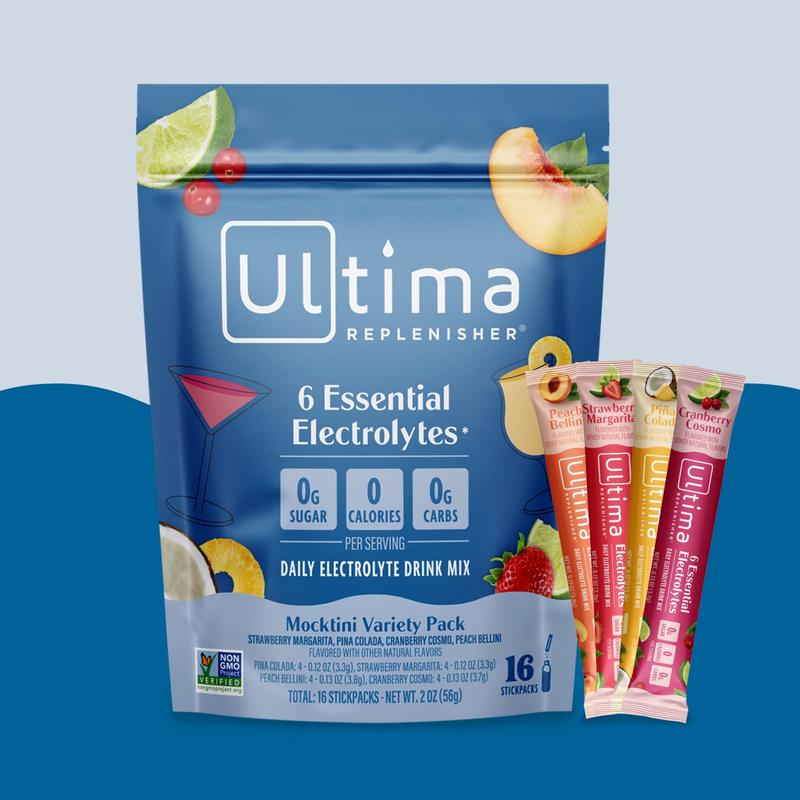 Stay refreshed with the Ultima Mocktini Variety Pack! Each stick delivers 6 essential electrolytes, magnesium, calcium, potassium, chloride, phosphorus, and sodium, plus Vitamin C and Zinc. Zero sugar, zero calories, and perfect for daily hydration at the gym, traveling, or on the go.