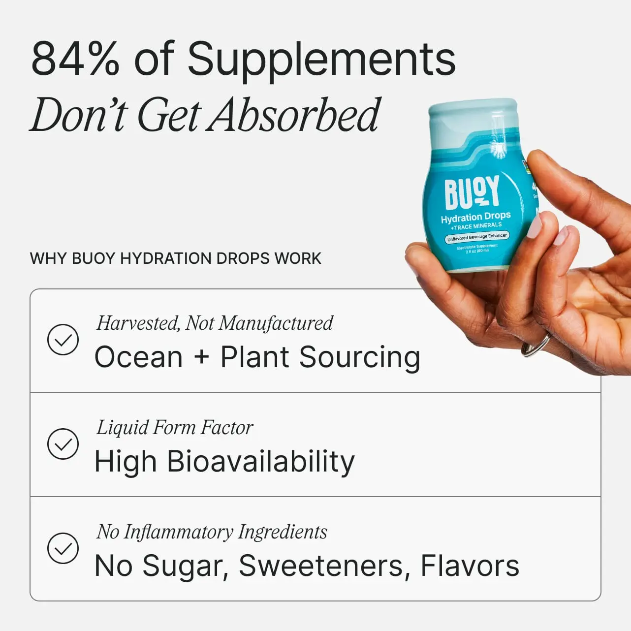 Hi Everyone, l just want to say that Buoy has the very best Hydration Drops on the market today ! Upon arrival l immediately placed a few drops in my spring water and received a natural uplifting light boost....l also tryed it in my morning coffee with the same results...l can already feel and see the difference in my energy level and overall mood...Therefore l highly recommended Buoy😊