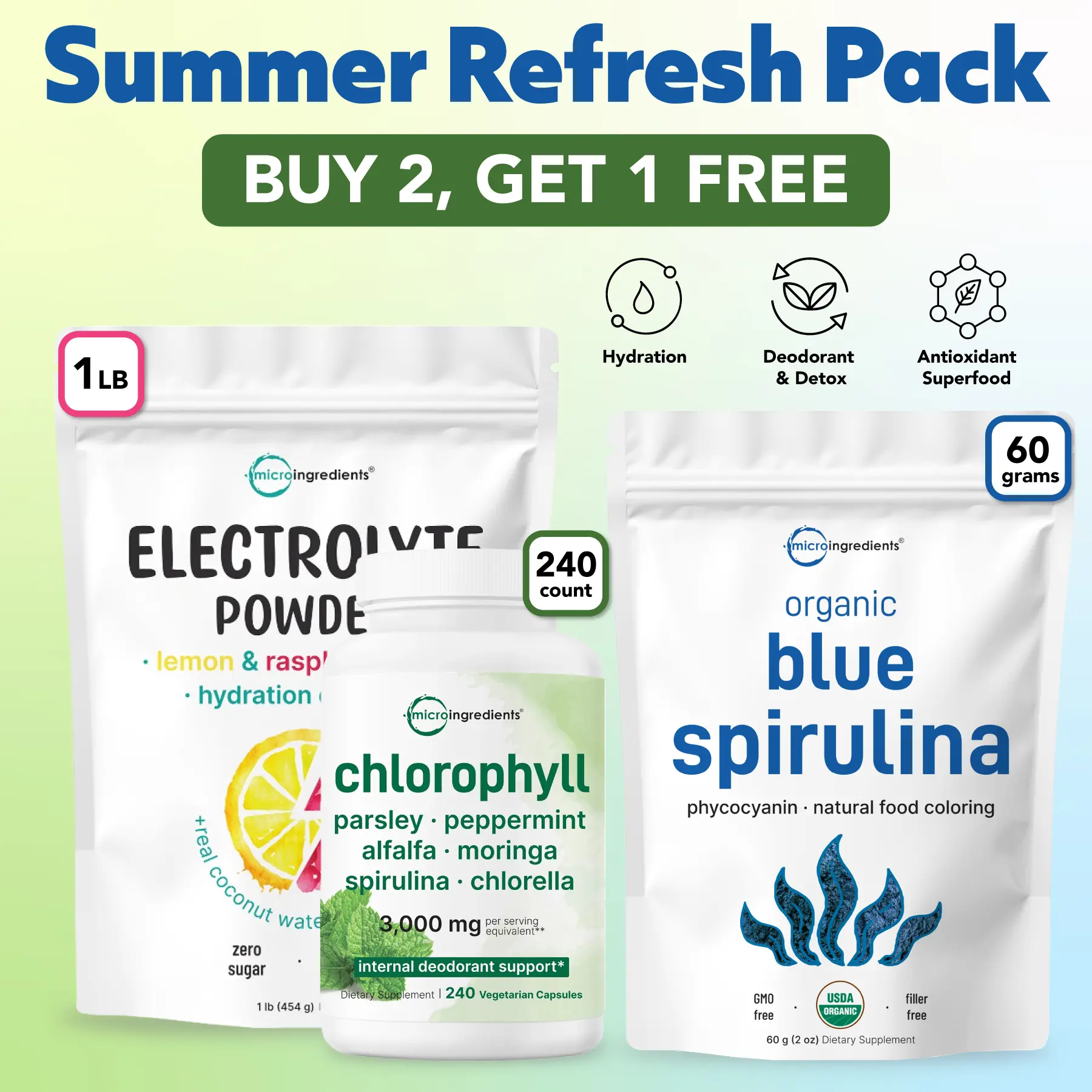 Micro Ingredients offers a 7-in-1 chlorophyll complex delivering a 3,000mg extra strength equivalent per serving. An antioxidant-rich blend of herbs, algae, and leafy greens formulated for women and men.