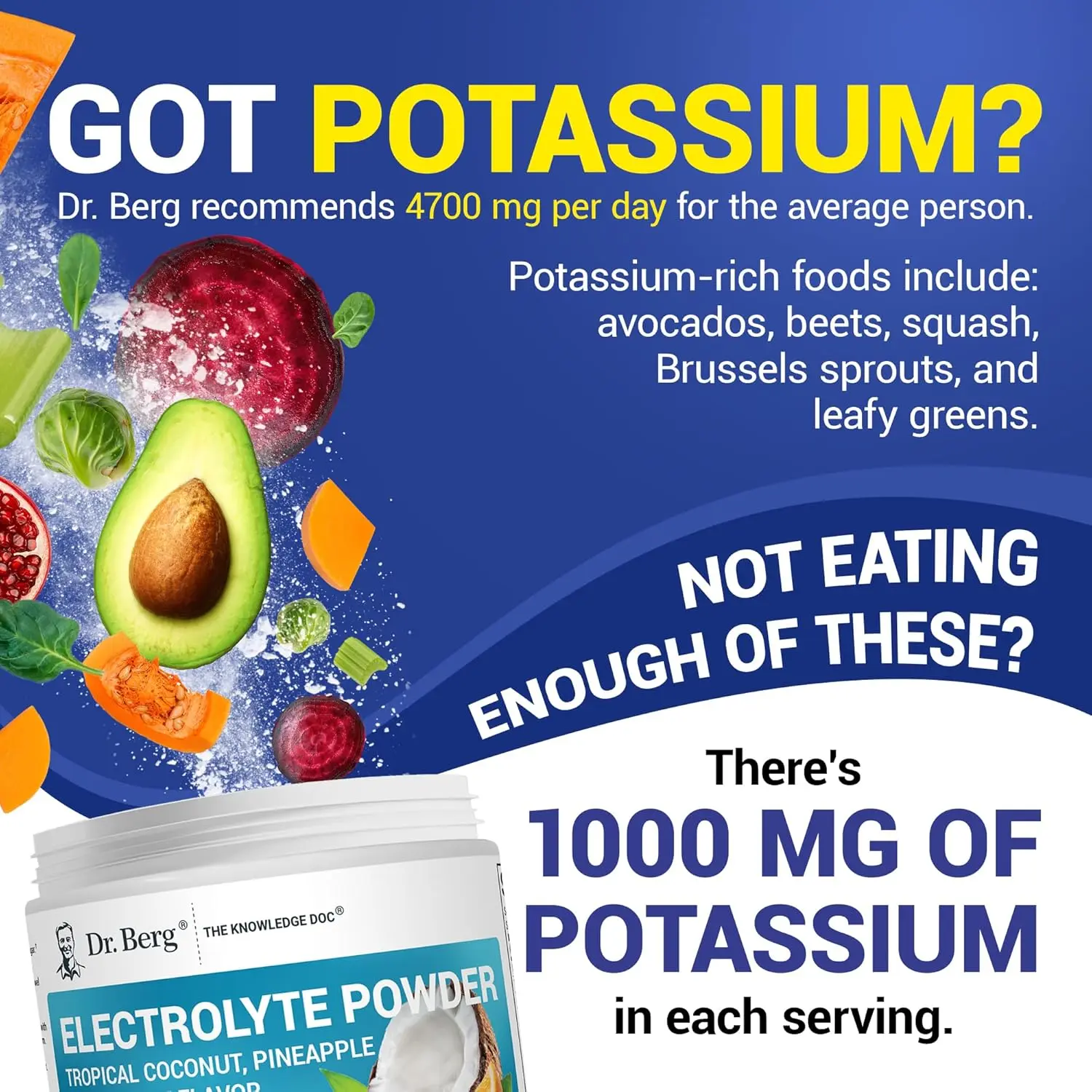 Loaded with Potassium: Each serving delivers 1000 mg of potassium to support muscle function and hydration.