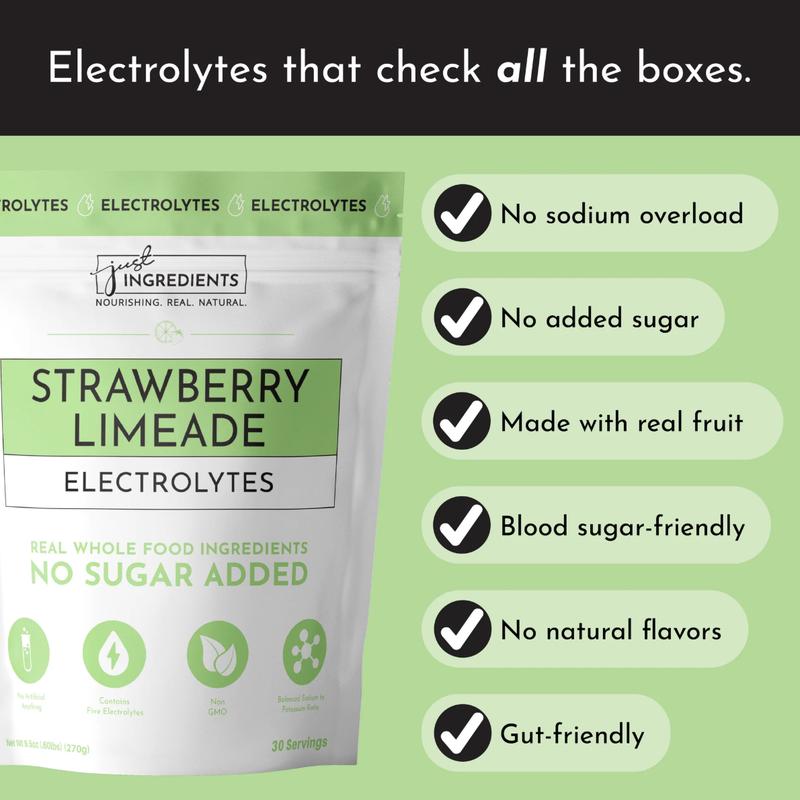 This strawberry limeade electrolyte drink is a crowd-pleaser! The flavor is very potent, so I often add 1 scoop to 20-24oz, rather than the recommended 14 oz. (I used to do the same with the Crystal Light drinks that I liked back in my toxic era!). Like all of the JI electrolytes, it is made with real fruit, so it mixes best when shaken vigorously for several seconds or mixed with a brother to avoid clumping. My only hesitation with drinking these on a daily basis/multiple times per day is the fact that they are sweetened with Stevia, which can be disruptive to hormones when consumed in significant doses. I would love to see it reformulated to exclude the stevia, but other than that, no complaints! One of the best electrolytes out there based on the ingredients and sourcing for sure!