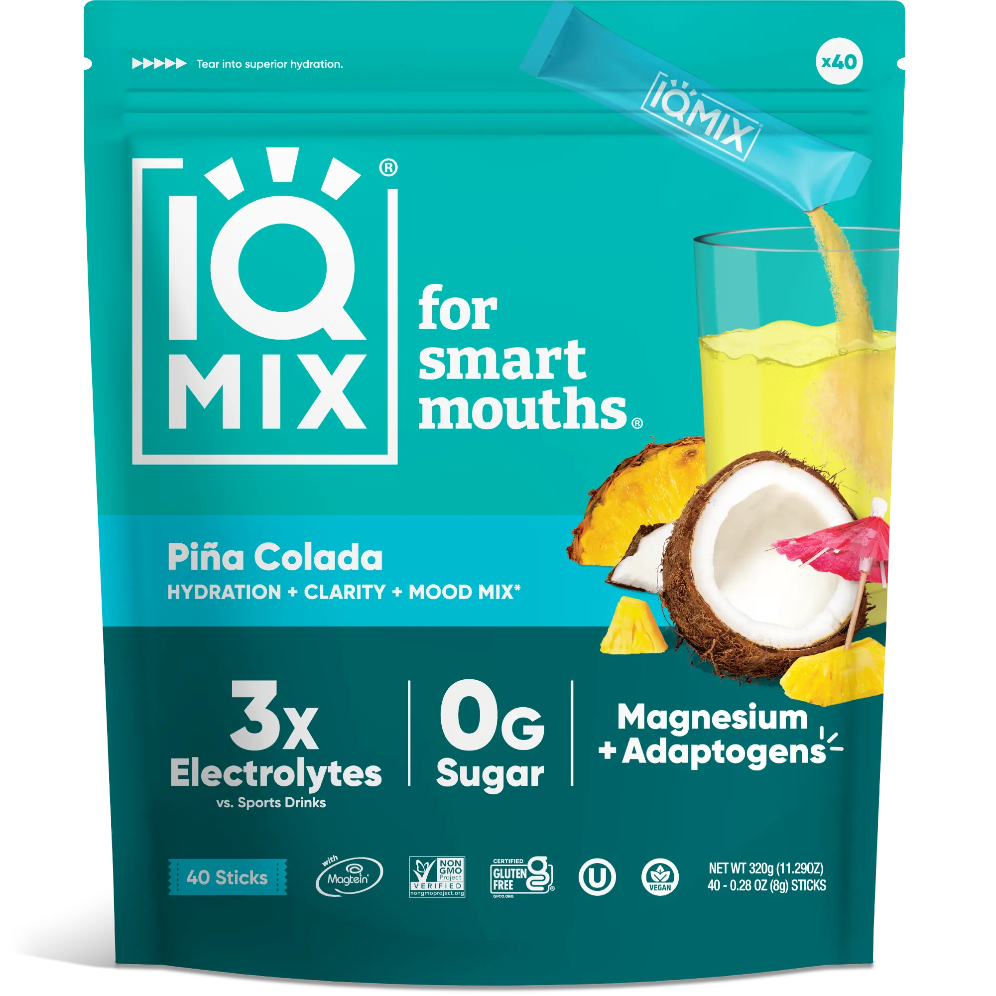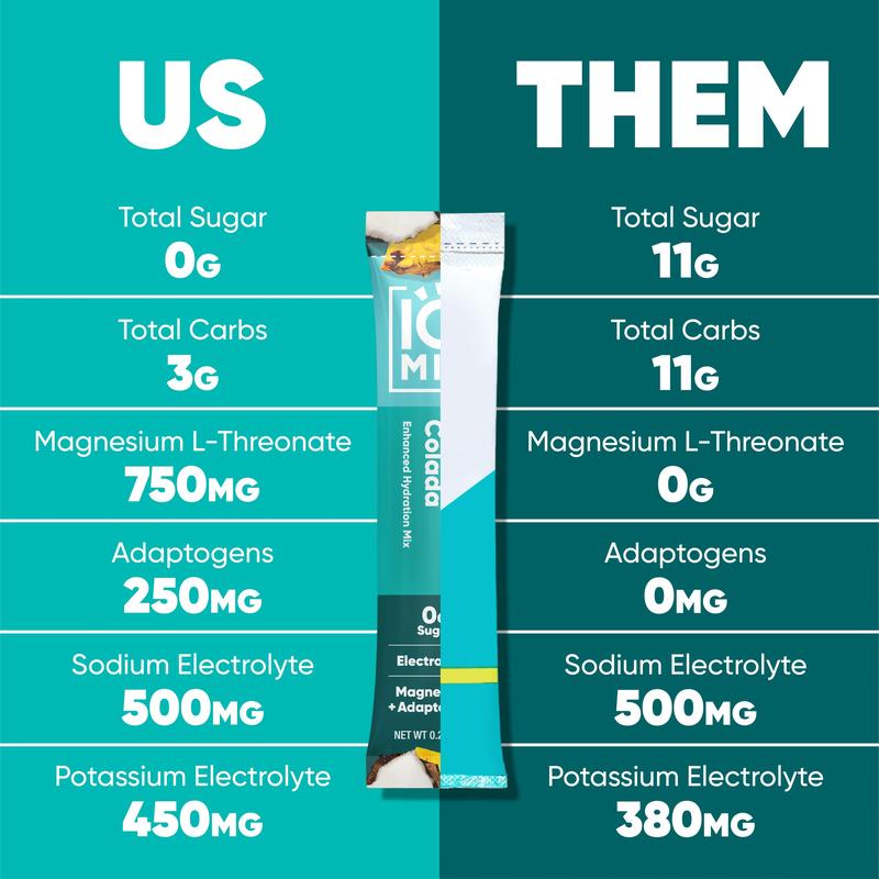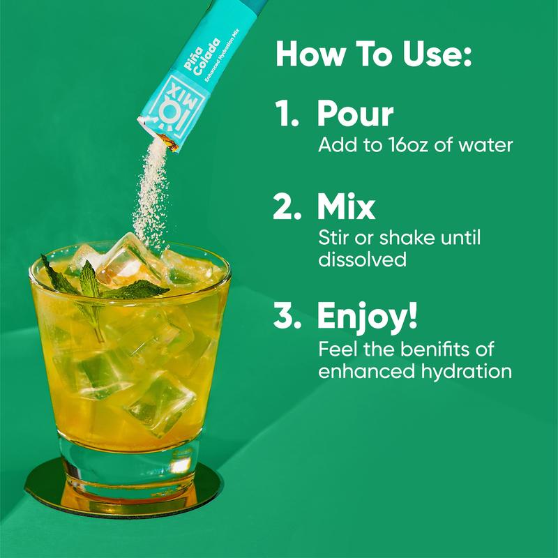·ON-THE-GO HYDRATION: These amazing hydrate powder packets are perfect for anytime and anywhere. For best results, shake or stir IQMIX with 16oz of water until the drink mix packet is completely dissolved. Our Piña Colada hydration mix is a luscious blend of creamy coconut and juicy pineapple