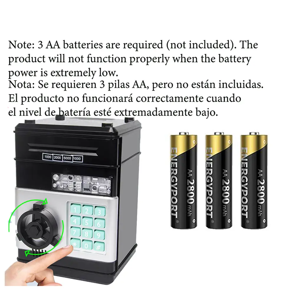 Dual Savings Capability: Versatile in function, this money saver accepts both coins and cash, offering dual modes of saving. Paper money can be inserted into the top slot where it automatically scrolls into the ATM-style chamber—a delightful mini ATM experience. Please ensure bills are crisp; old or soft paper may jam the mechanism.