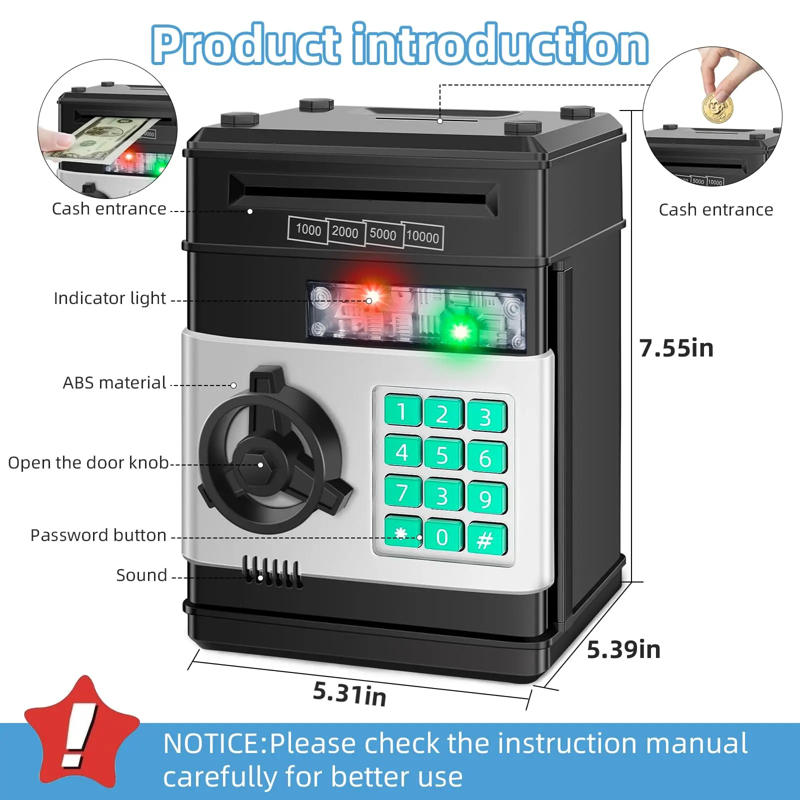 Very hard to change the password I thought it would light up when you insert your money let you know your total but it doesn't and like you said it's for a boy not adult