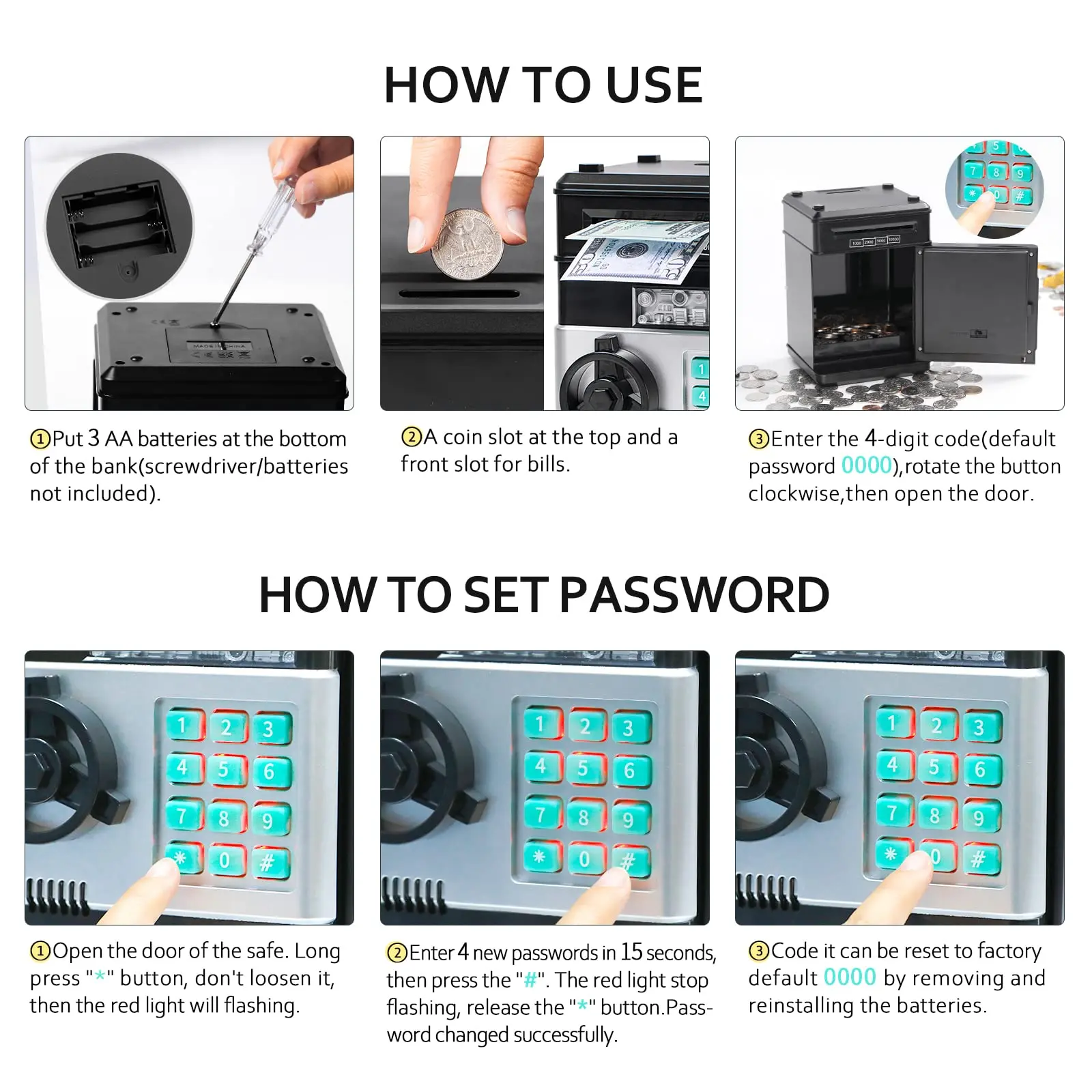 The day after I got this safe, I was trying to count my money and then my password that I had set no longer worked, and It had reset To the default password And then eventually stopped opening, but after I Left it alone for a bit it started working like regular and I was able to reset the password