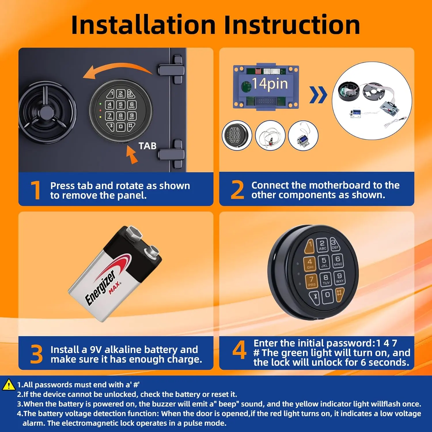 Electronic Safe Lock Replacement Keypad with Solenoid Lock, Gun Safe Lock with Programmable Electronic Keypad, Lock Fits High Security Safe Box and Security Cabinet