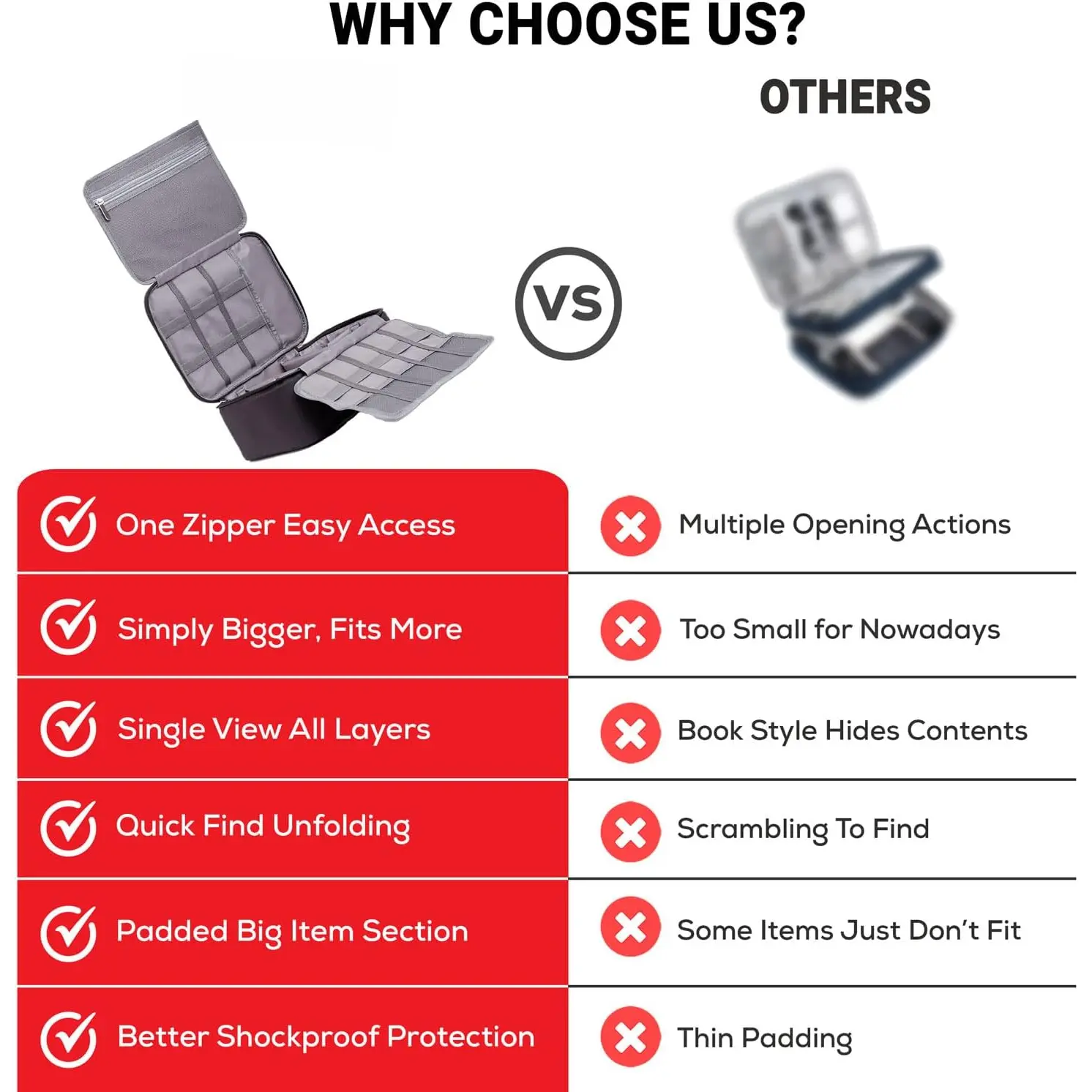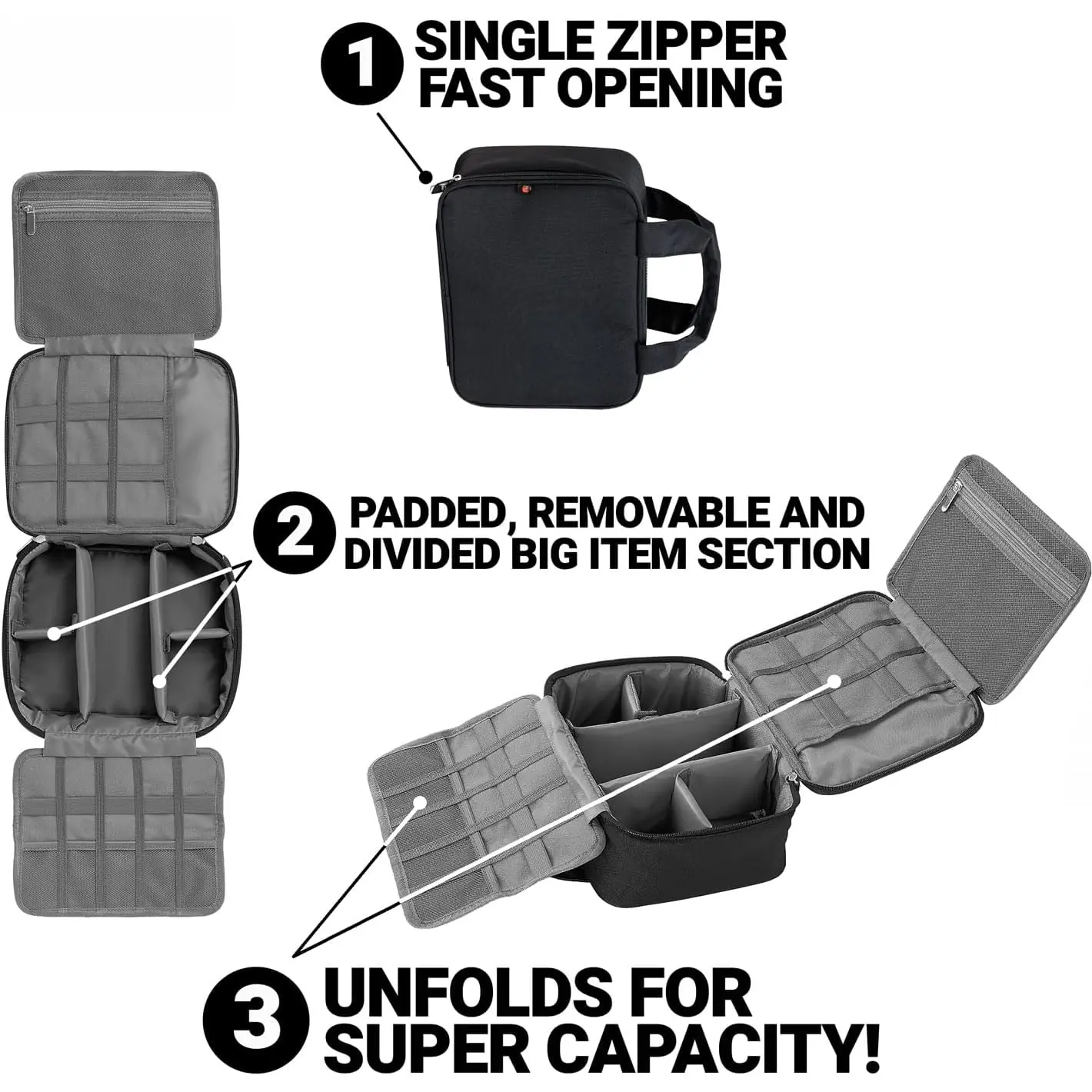 The only organizer travel case you will need: Enjoy quick access to your accessories with the organizer travel case! This travel essentials organizer bag was designed with your convenience in mind, offering effortless access and ensuring easy carrying and effective storage! This is the travel solution for management.