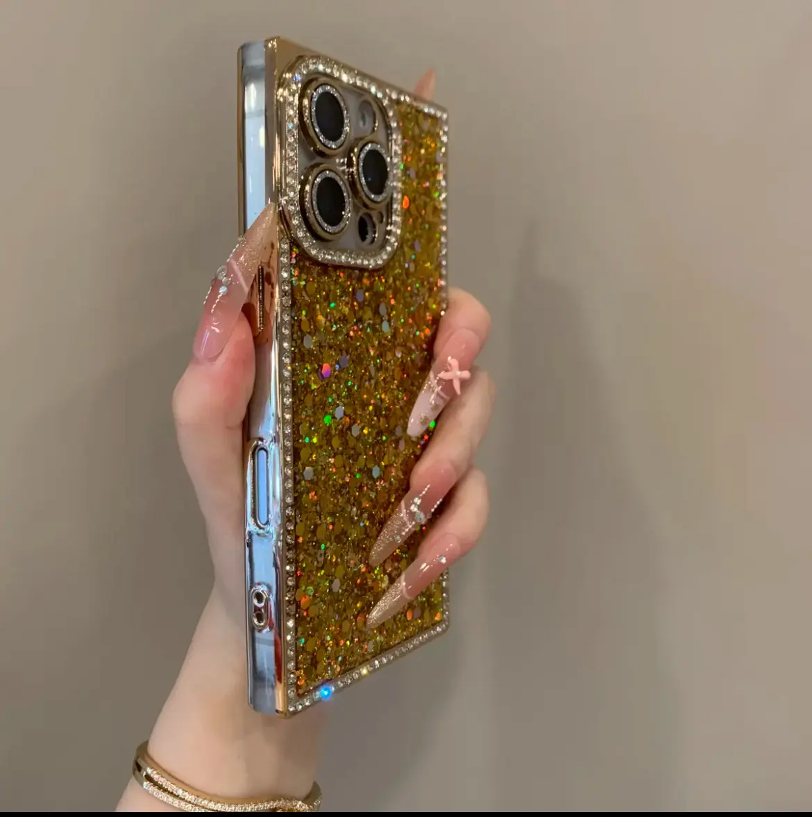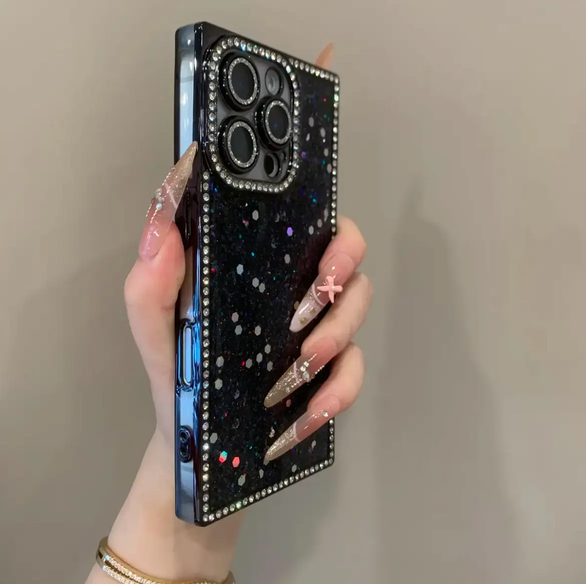 Looking to add a little sparkle to your everyday phone routine? This Electroplated Rhinestone Frame Sequin Case is just the glam upgrade your iPhone needs! Designed to fit iPhone 16 Pro, 15, 14, and 13 models, it perfectly hugs your device with a snug TPU shockproof shell that guards against accidental drops and bumps. The dazzling rhinestone frame and shimmering sequin design make your phone stand out while keeping it safe. Whether you’re at work, out with friends, or just scrolling at home, this case combines style and protection effortlessly. Plus, it’s customizable, so you can add your personal flair to your phone’s look. Each order includes one beautifully crafted case tailored to your phone model. Ready to turn heads and keep your phone safe? Grab this sparkling case and let your style shine!