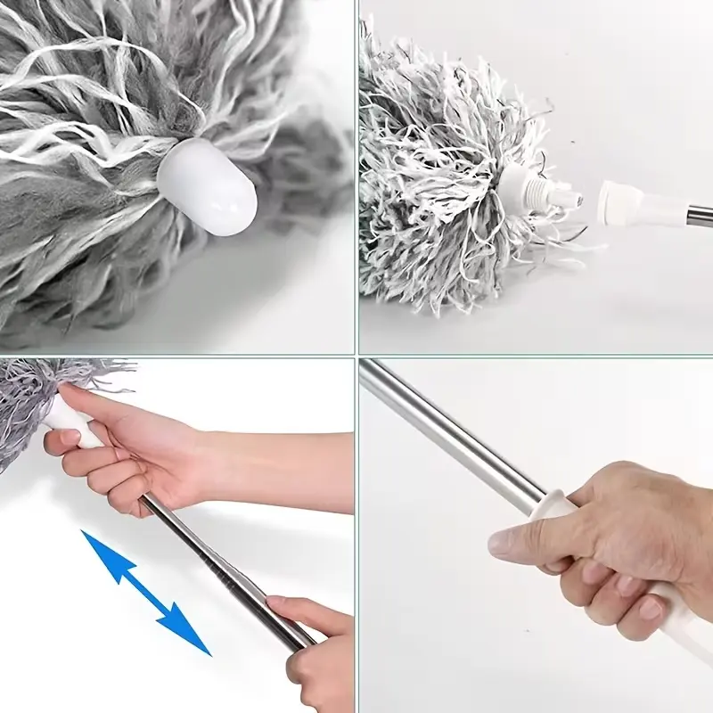 1pc Extendable Spider Web Duster with Medium Stiff Bristles, Retractable Stainless Steel Pole for Indoor & Outdoor Cleaning, No Battery Required, Ideal for Kitchen, Bedroom, Living Room, Bathroom, Duster for Home Cleaning, Household Cleaning Tool