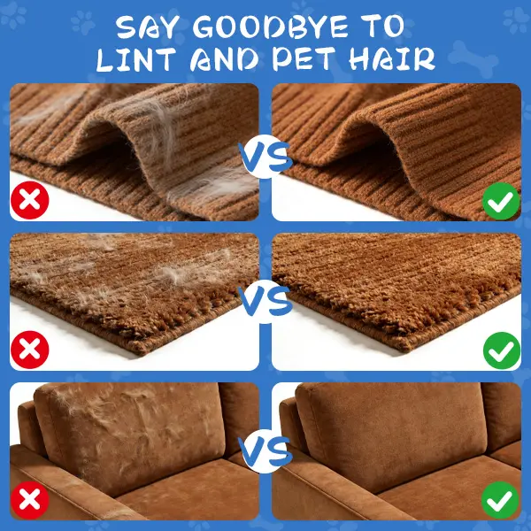 ·Versatile UseSuitable for clothes, beds, sofas, carpets, and car seats. Just swipe to remove pet hair and keep your home clean and hair-free.🧼