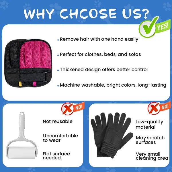 ·Convenient and PracticalMade from breathable mesh fabric for comfortable and effortless use. The expanded contact area ensures efficient hair removal while the soft material protects your hands, even during long grooming sessions. 🧼